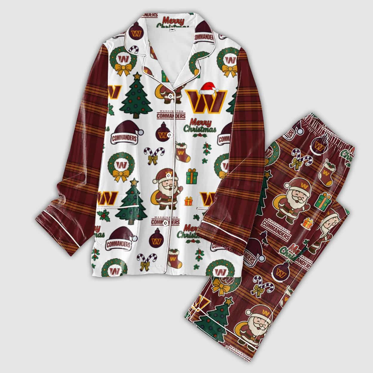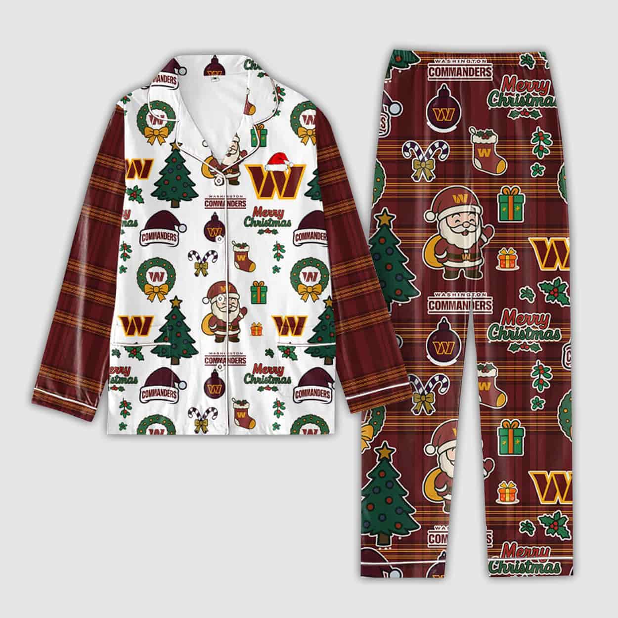 Celebrate the holidays with the Commanders Merry Christmas Plaid Button Pajama Set — a festive blend of football pride and seasonal fun for fans who love to lounge in bold style.