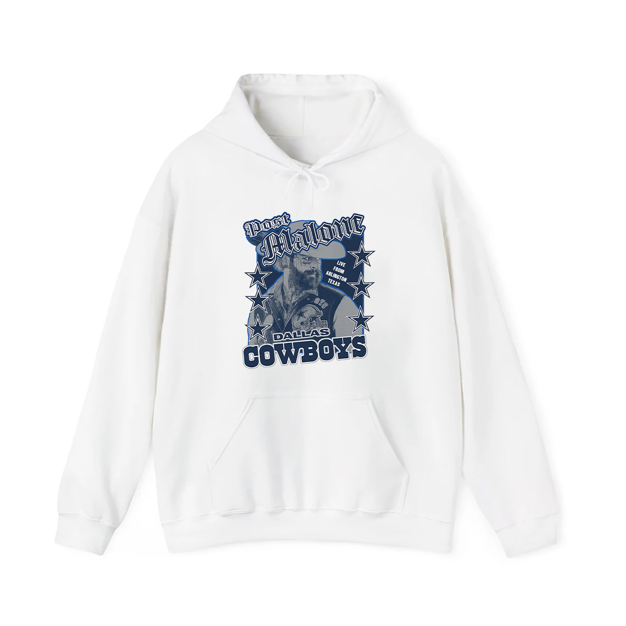 Behind the design is a celebration of two icons—Post Malone, the genre-defying artist with Texas roots, and the Cowboys, America’s Team. The cowboy hat and starry motif nod to Malone’s signature style and the team’s legendary legacy. It’s more than merch—it’s a wearable anthem for bold thinkers who live loud, love hard, and cheer harder.