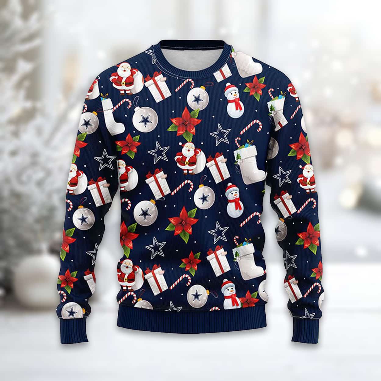 Cowboys Santa Claus Snowman Ugly Christmas Sweater – America’s Team Holidays
