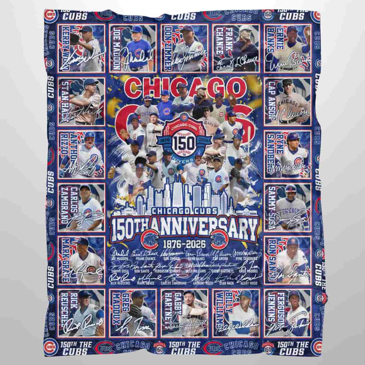 Celebrate 150 years of baseball magic with the Cubs 150th Anniversary 1876-2026 Blanket—a vibrant tribute to legends, loyalty, and Wrigley Field wonder.