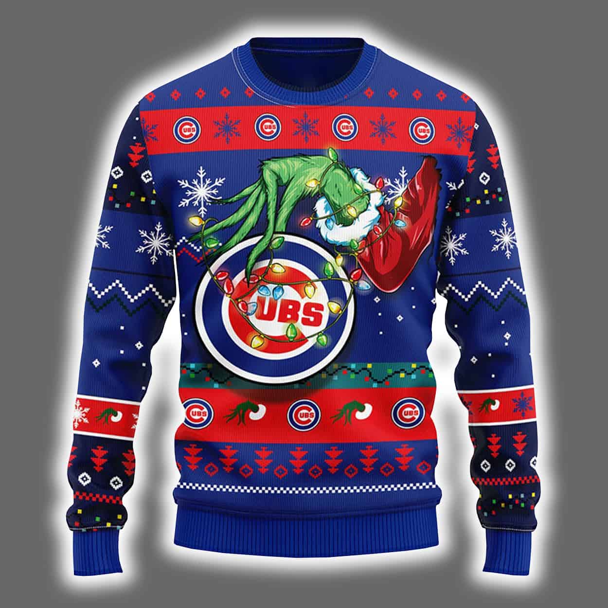 Go Full Grinch with the Cubs Grnch Hand Ugly Christmas Sweater—Holiday Hijinks Meet Baseball Pride!