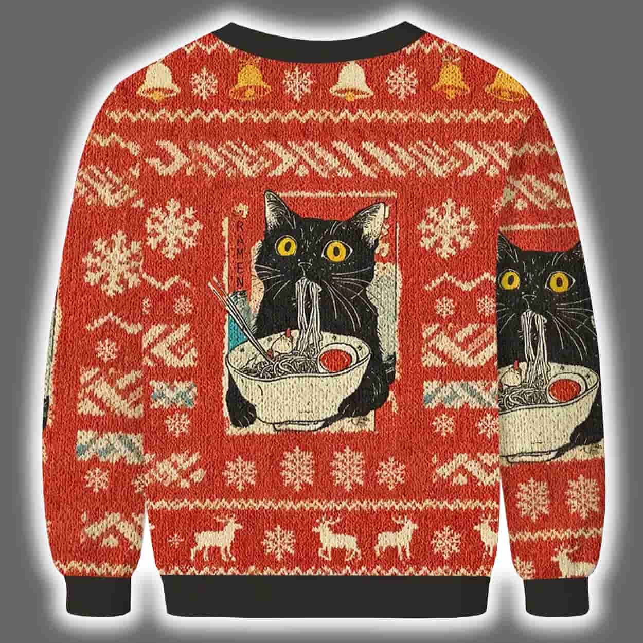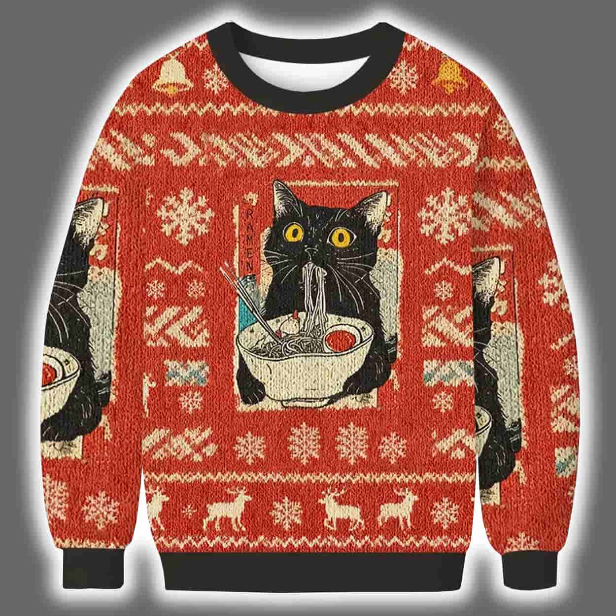 Whether you’re gifting it or rocking it yourself, the Cute Cat Eating Ramen Ugly Christmas Sweater is your ticket to holiday hilarity. Grab yours now and let your festive spirit purr loud and proud!