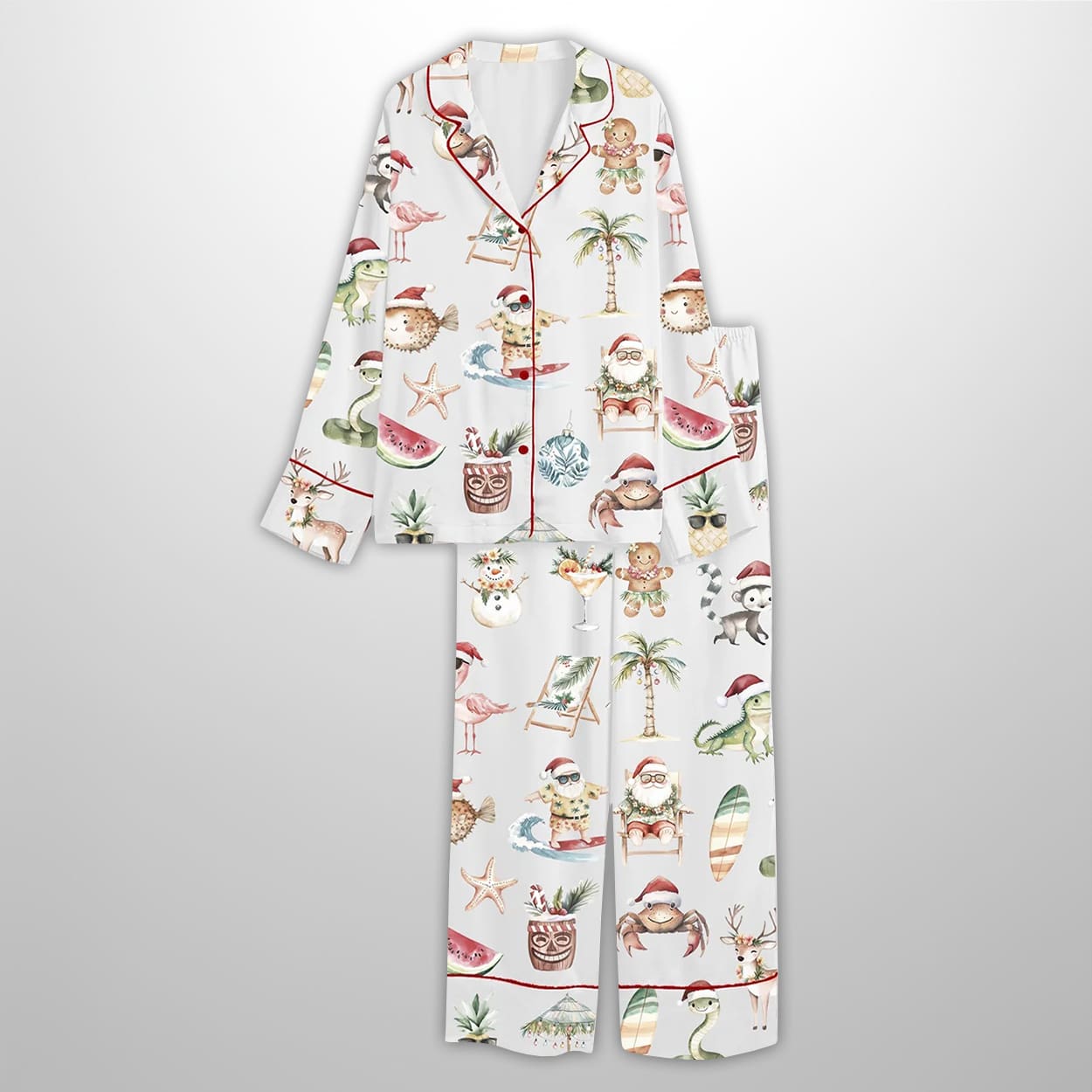 Cute Tropical Holiday Watercolor Hawaiian Christmas Satin Pajama Set