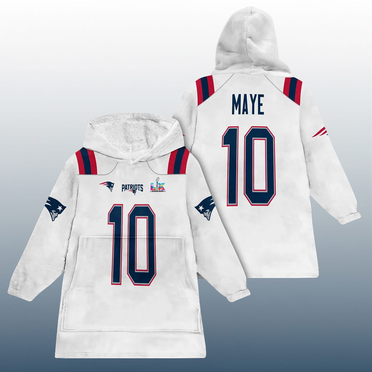 Score big on comfort and team pride with the D.M 10 New England Football SB LX Unisex Blanket Hoodie. Featuring Maye’s name and Patriots flair, it’s a cozy celebration of bold fandom.