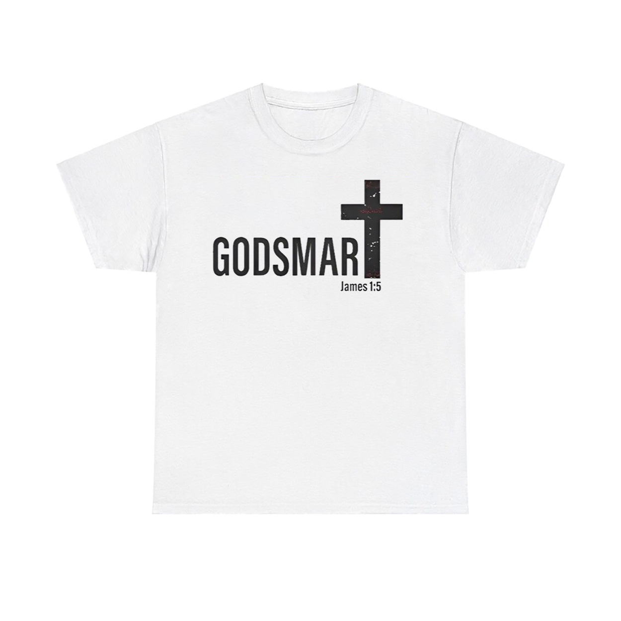 This isn’t just a T-shirt—it’s a declaration. This shirt features a striking front design that commands attention: the word “GODSMAR” in bold black lettering, followed by a centered black cross and the subtle yet powerful reference “James 1:5” below. It’s clean, confident, and unapologetically spiritual. Whether you’re walking into a stadium or a Sunday service, this shirt lets your values speak before you do.