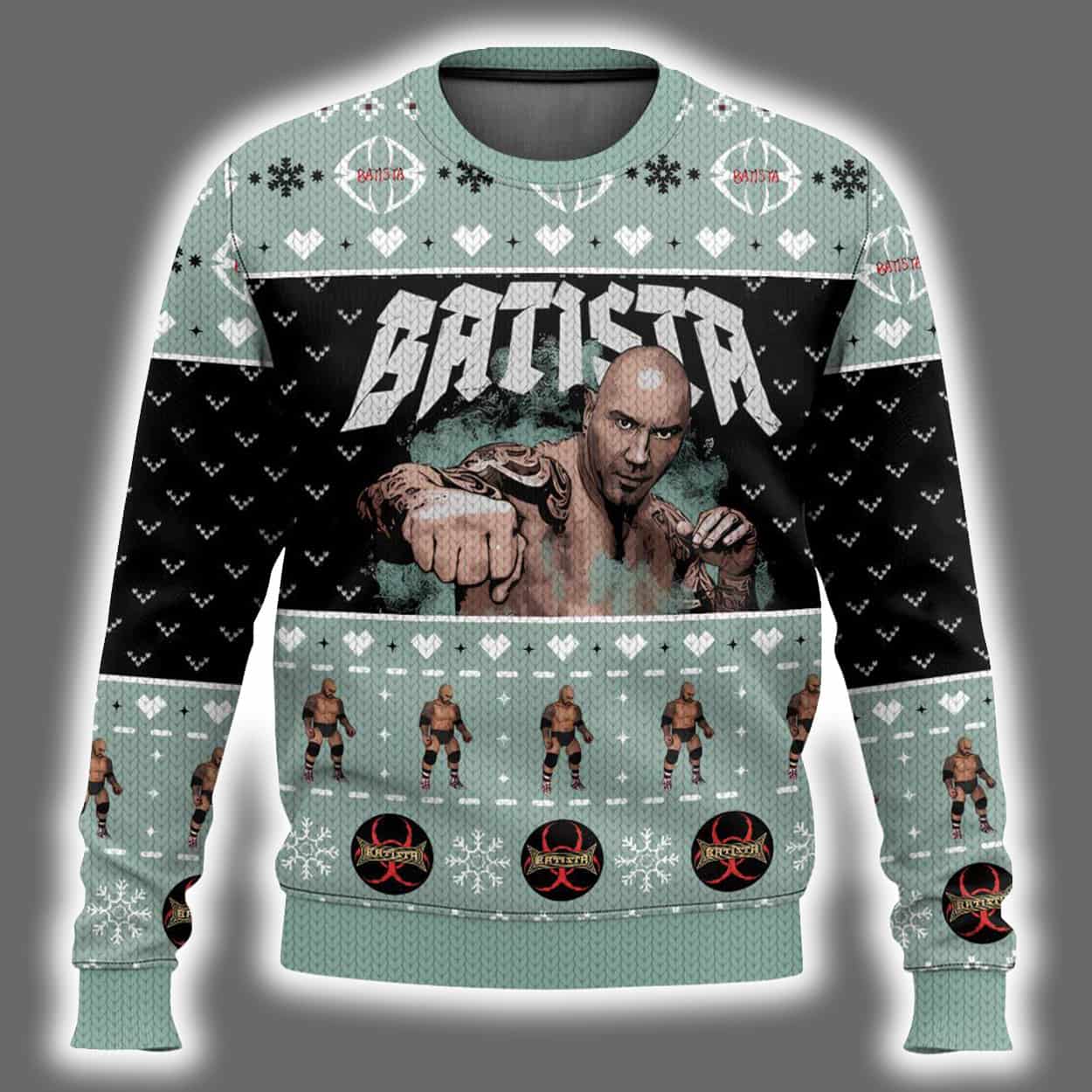 Bring the heat to your holiday wardrobe with the Dave Bautista Ugly Christmas Sweater—a festive knockout that blends seasonal cheer with wrestling swagger. Perfect for fans who like their celebrations bold and action-packed.