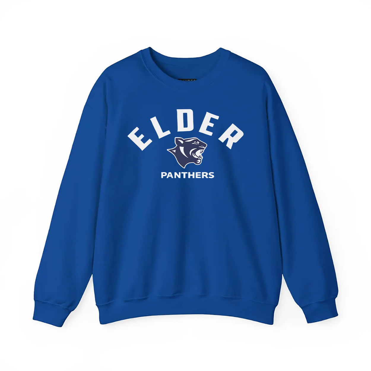 Step into the spotlight with this hoodie, a tribute to unapologetic school pride and fierce individuality. This royal blue hoodie features a striking front design: the word ELDER arches boldly across the chest in crisp white block letters, commanding attention. Beneath it, a powerful panther head graphic snarls with intensity, flanked by the word PANTHERS in a clean, confident font. It’s not just a hoodie—it’s a declaration.