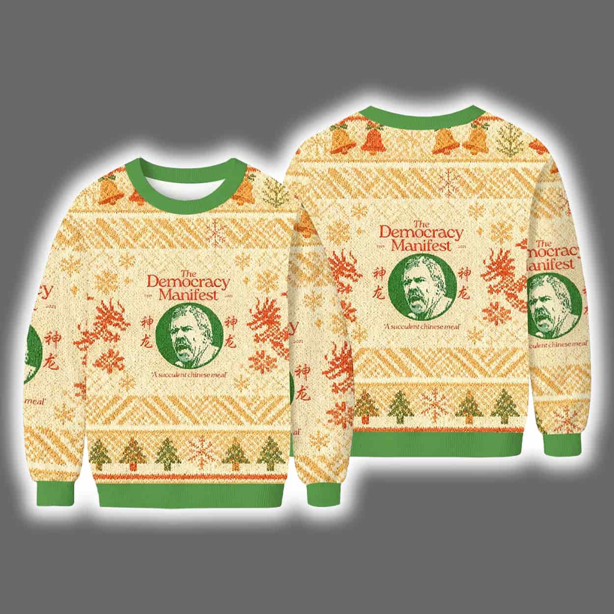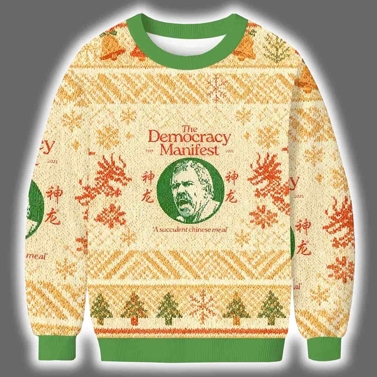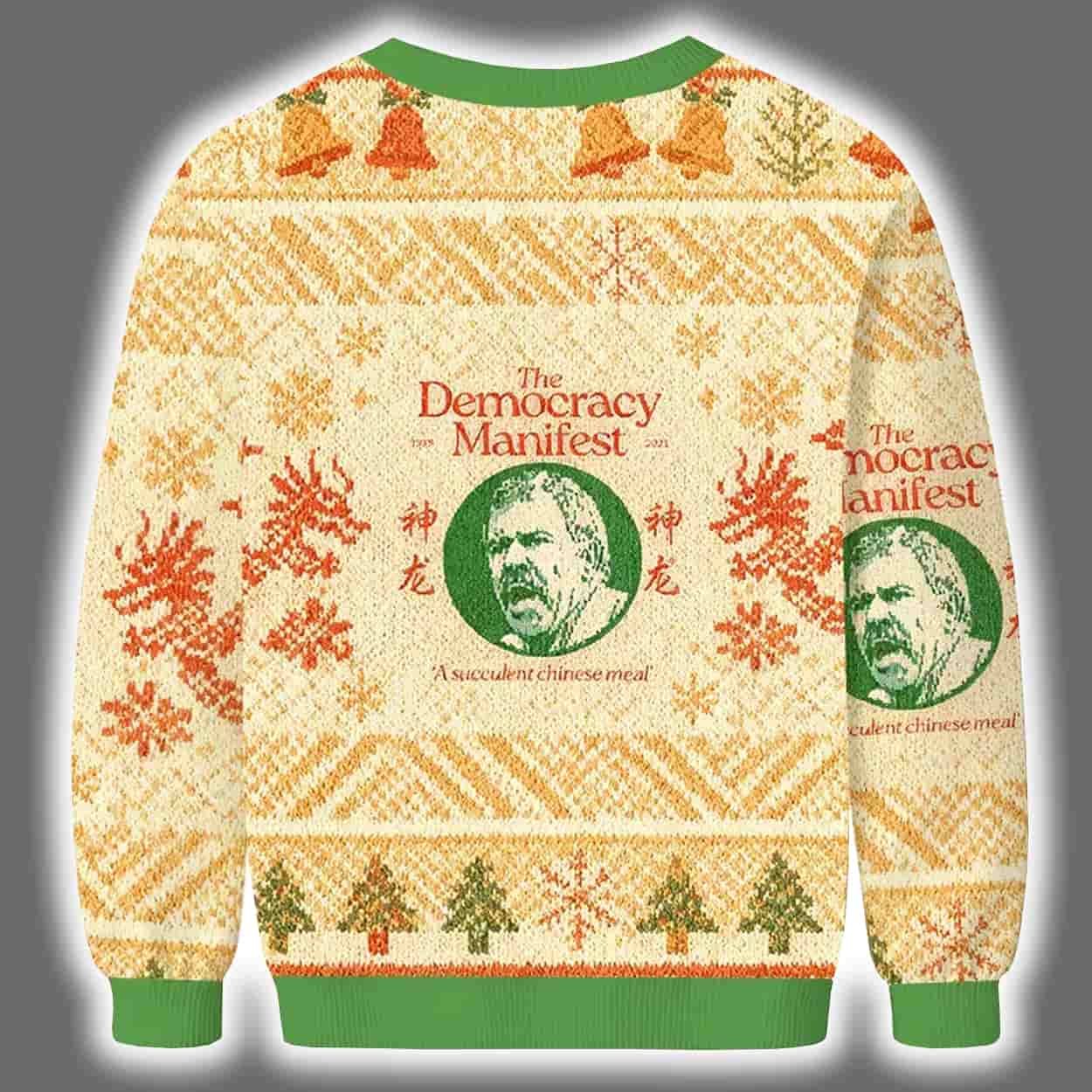 Democracy Manifest Succulent Chinese Meal Retro Ugly Christmas Sweater