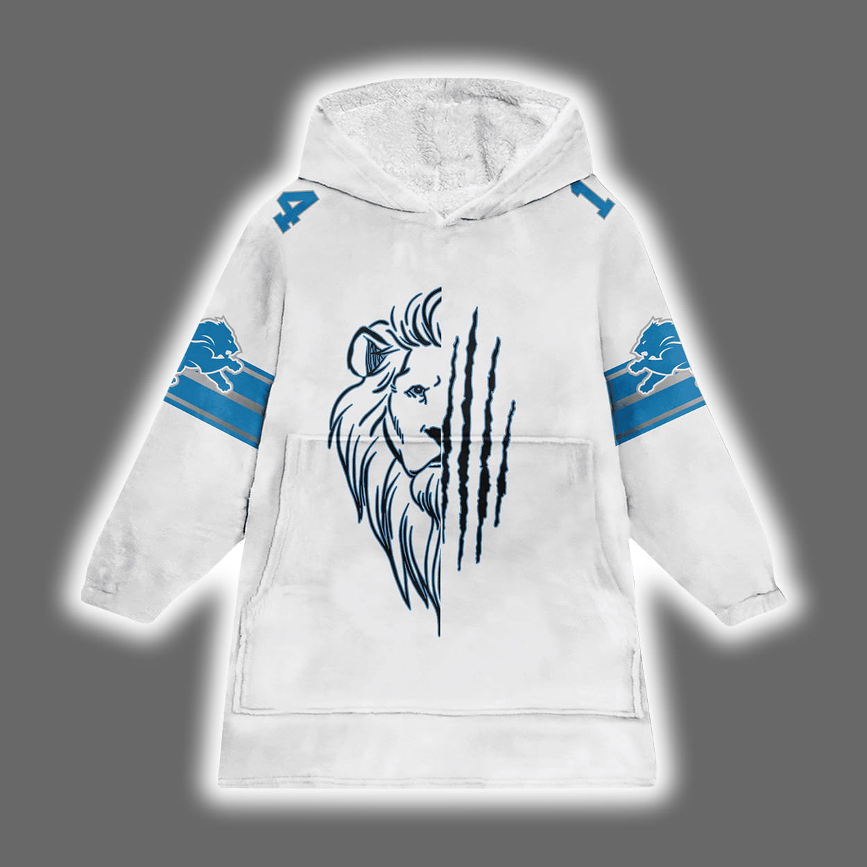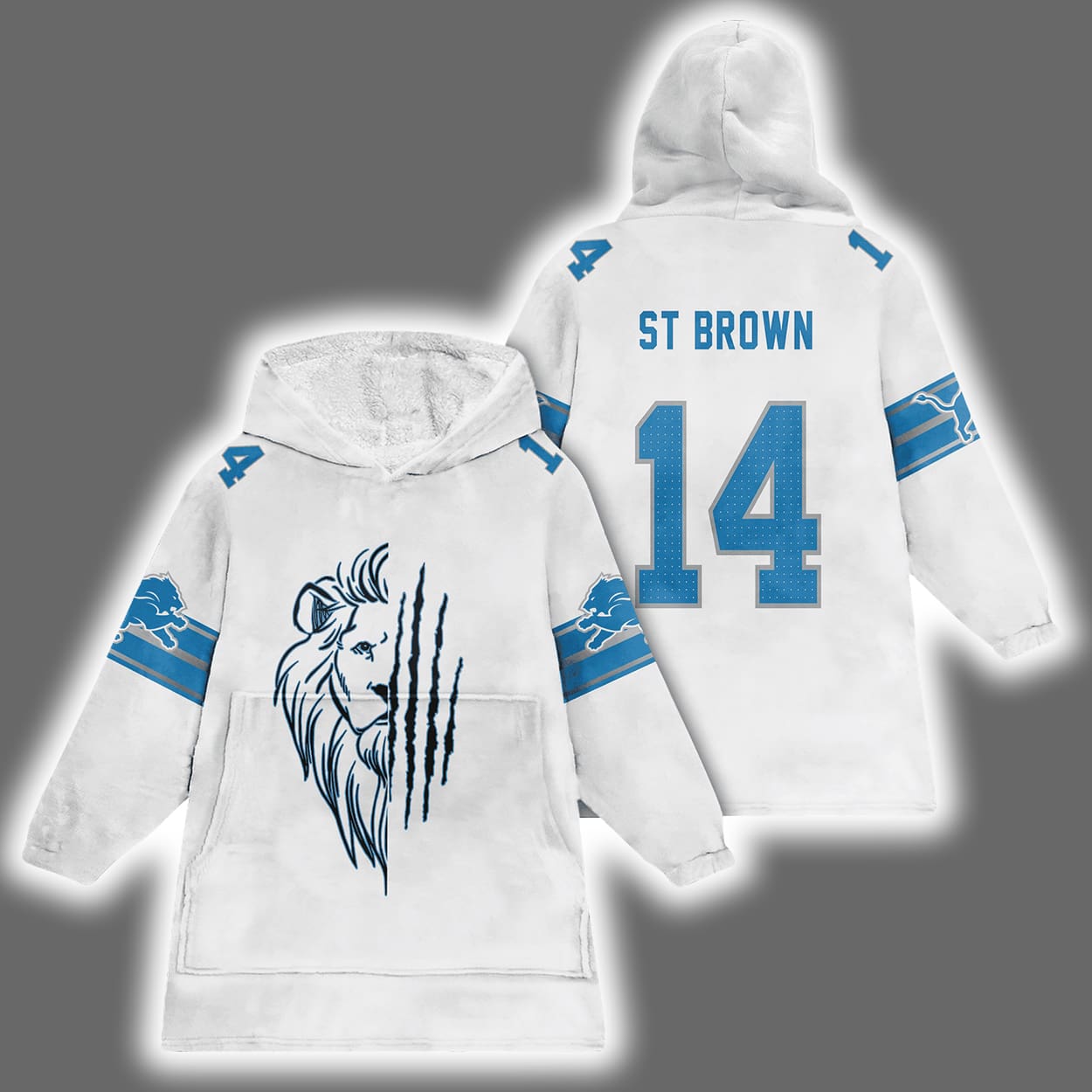 Roar in Style: The Detroit Football St Brown 14 Unisex Blanket Hoodie for Detroit Fans