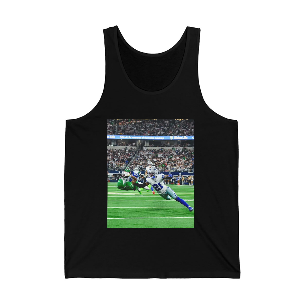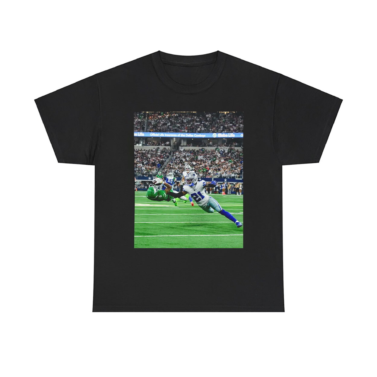 This isn’t just about football—it’s about defiance, precision, and the thrill of proving doubters wrong. The design captures the exact second before Smith lands, immortalizing his fearless leap and the chaos it caused. The Cowboys rivalry adds extra spice, making this shirt a bold declaration for fans who live for the drama and the glory. It’s a tribute to those who dare to fly.