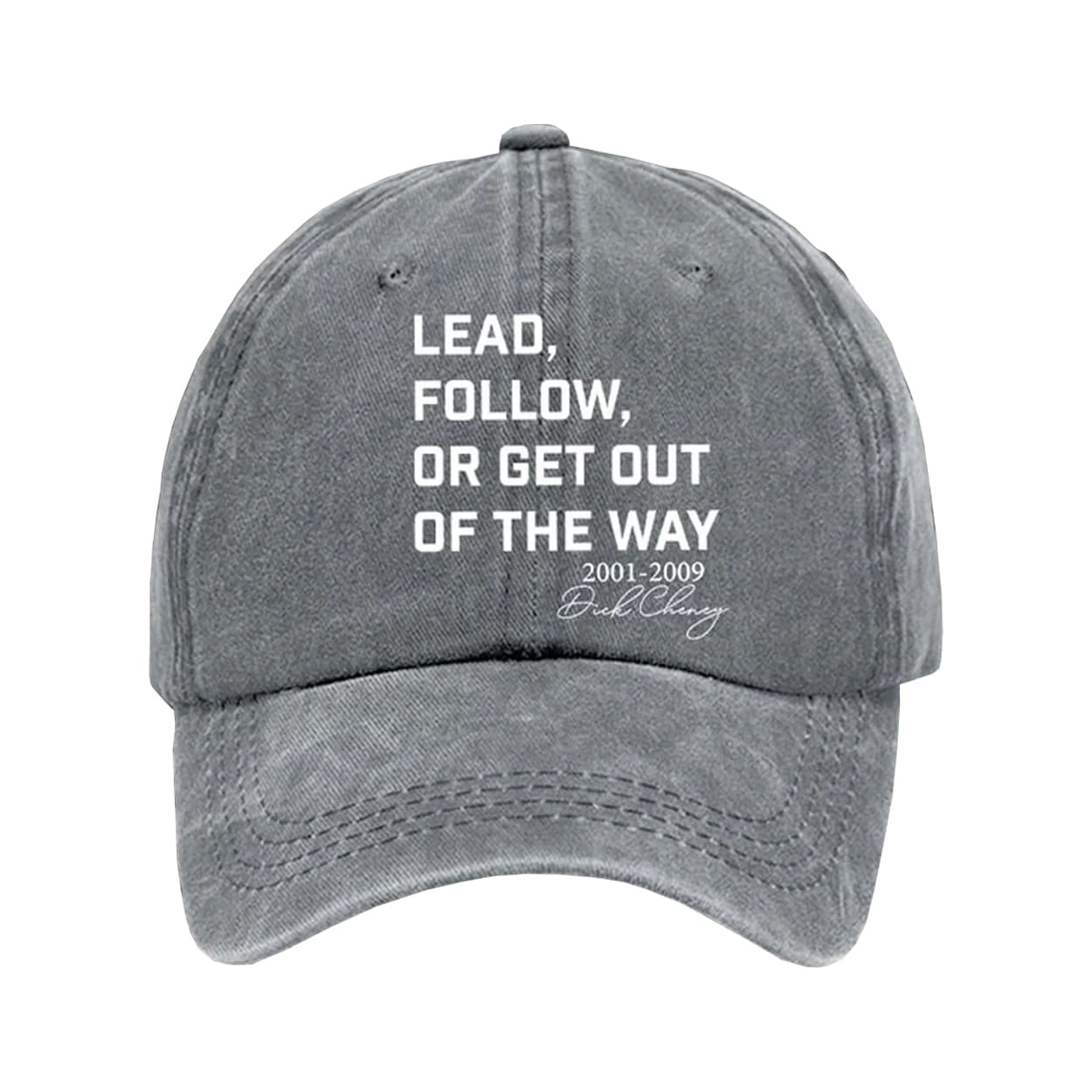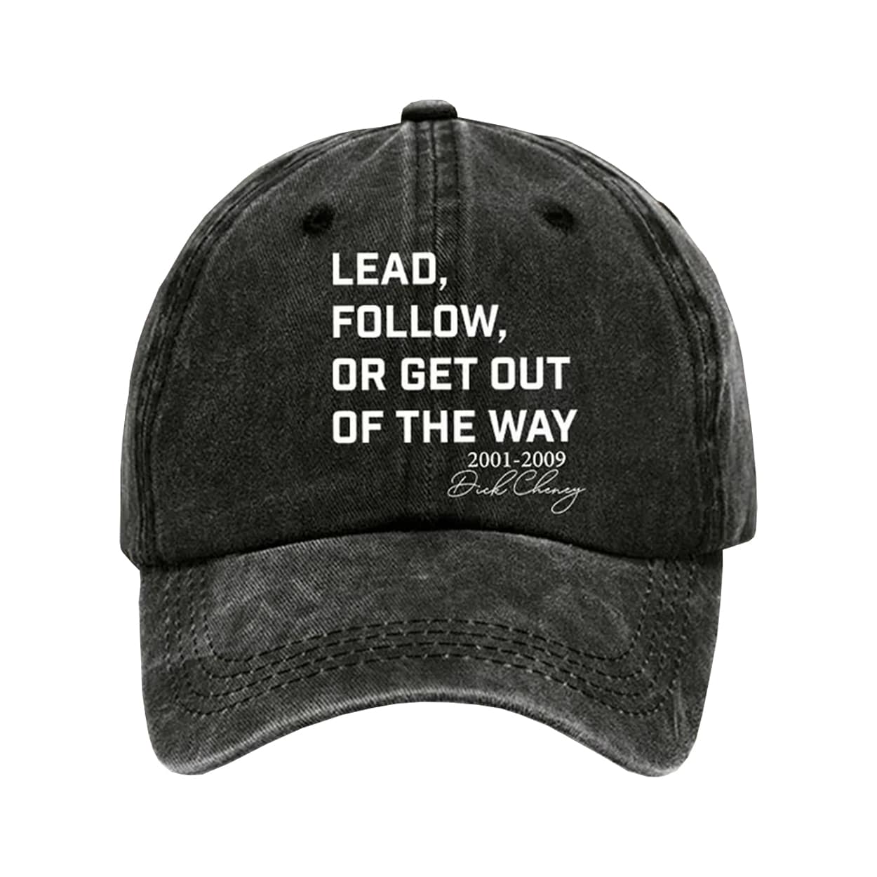 Command attention with the Dick Cheney Lead Follow Or Get Out Of The Way Hat — a bold tribute to unapologetic leadership and vintage political grit.