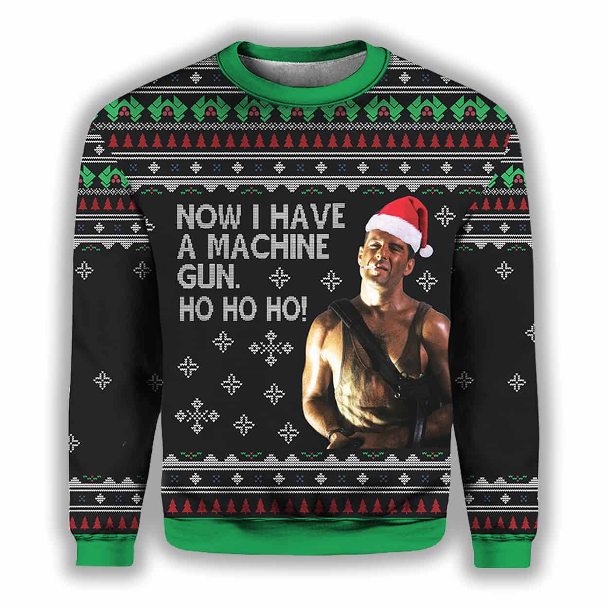Die Hard Ho Ho Ho Machine Gun Christmas Ugly Sweater