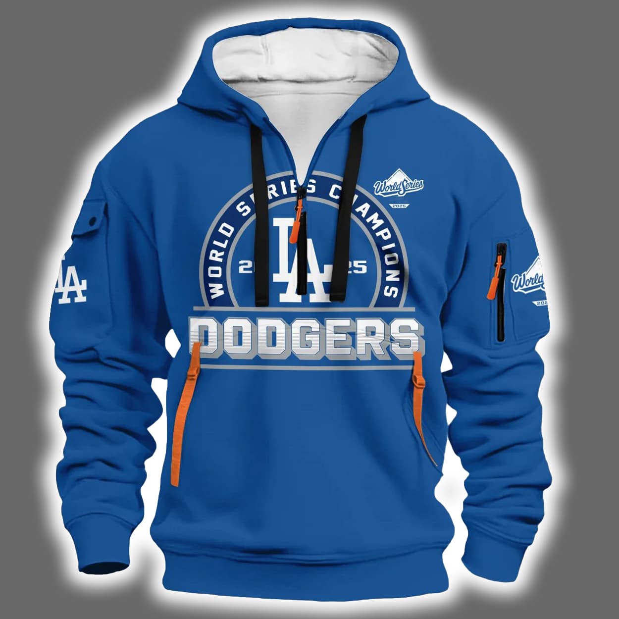 Crowned in Blue: The Dodgers 2025 World Series Champions Signature Hoodie Half Zipper