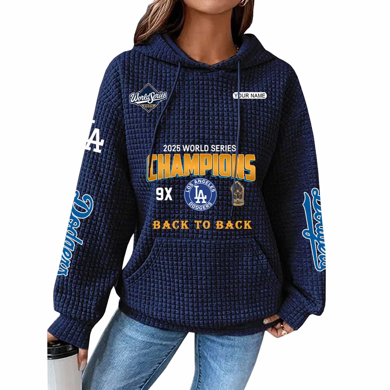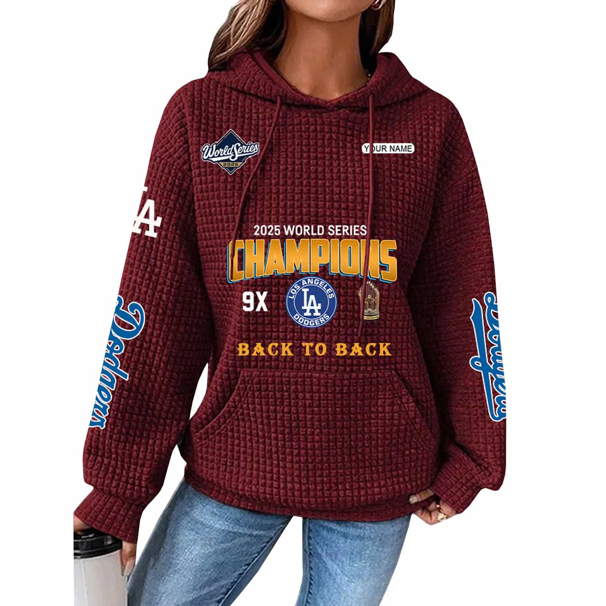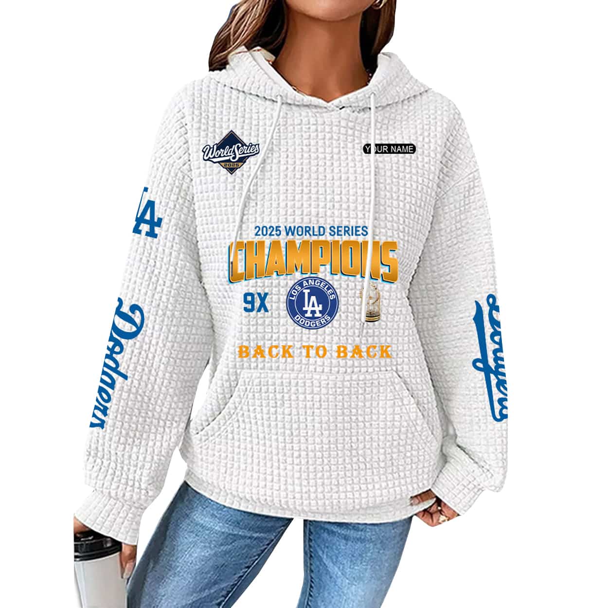 Dodgers 9X Back 2 Back World Series Champions 2025 Waffle Hoodie