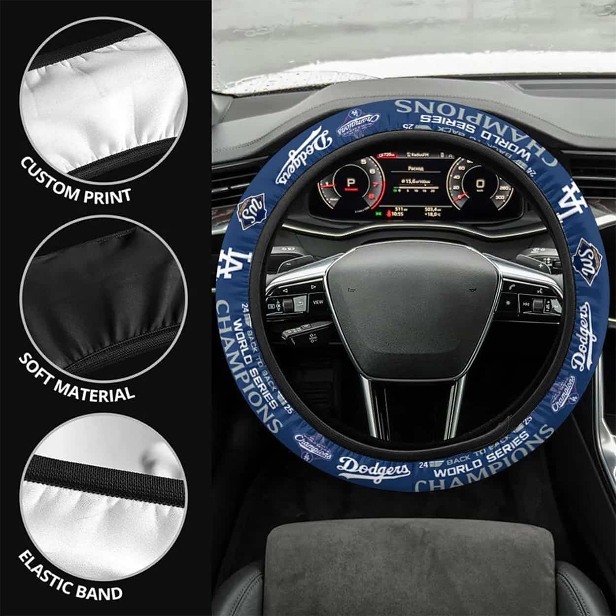Back-to-Back Glory: Dodgers Back To Back 2025 World Series Champions Steering Wheel Cover for Fans Who Drive with Pride