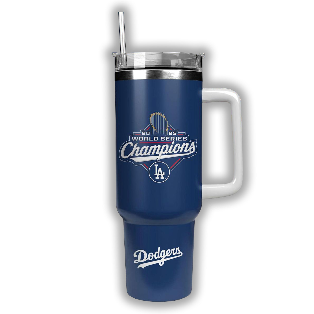 This isn’t just a tumbler—it’s a trophy you can take anywhere. This 40oz tumbler proudly flaunts the team’s historic wins with a double-dose of swagger. One side showcases the Commissioner’s Trophy with the bold text “WORLD SERIES CHAMPIONS” and the years ’24 and ’25 stacked like home runs. Below, “BACK TO BACK” and the LA logo drive the message home. Flip it around and you’ll find a sleek “World Series Champions” script above the Dodgers logo, with a stylish nod to the team’s legacy at the base.