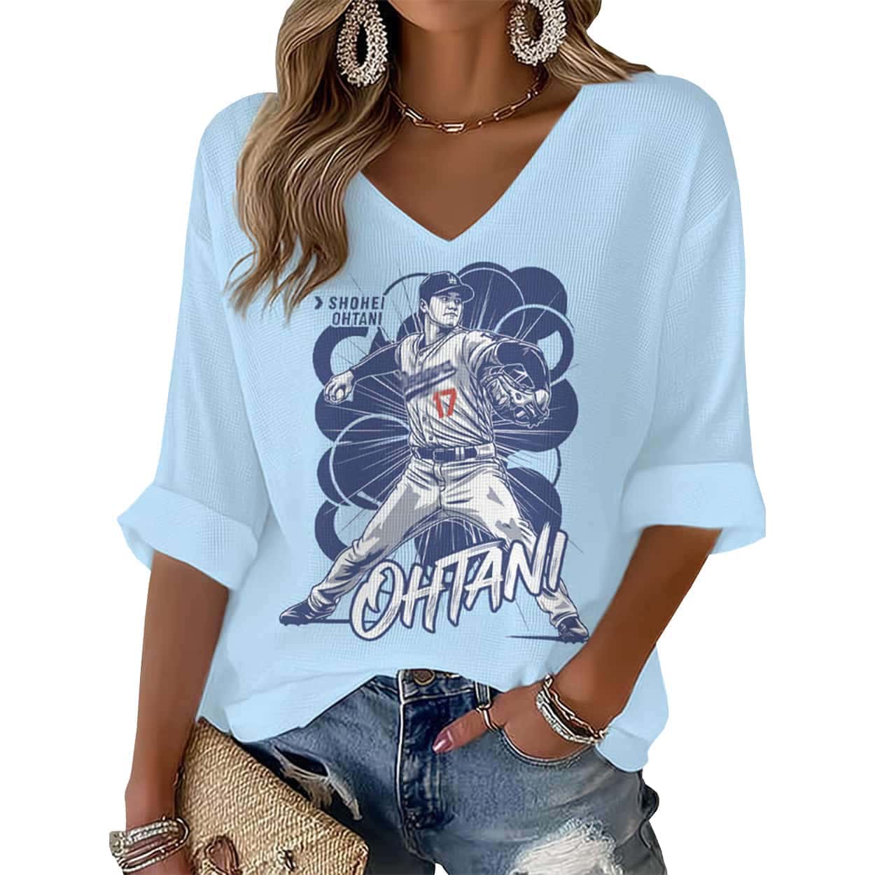 Pitch Perfect Style: The Dodgers Shohei Ohtani Print Waffle Long Sleeve Shirt That Hits Different