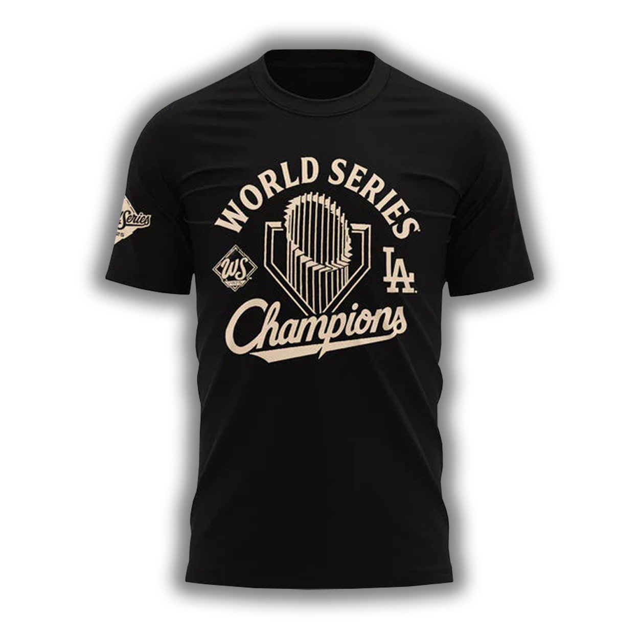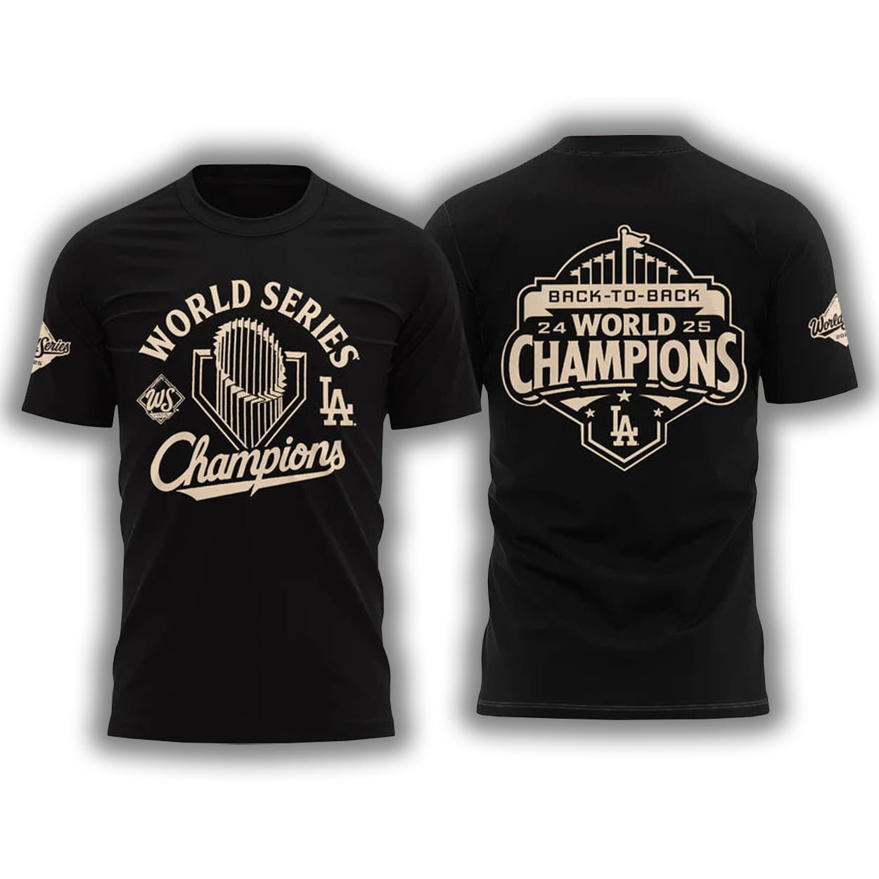 Step into the winner’s circle with this shirt—a tribute to baseball greatness. This shirt features a front design that proudly declares “WORLD SERIES CHAMPIONS 2025” alongside a stylized trophy and the iconic “LA” logo. Flip it around and the back hits even harder: “BACK-TO-BACK WORLD CHAMPIONS” in bold lettering, framed by a dramatic stadium-inspired graphic. It’s not just a shirt—it’s a wearable victory lap for fans who bleed Dodger blue.