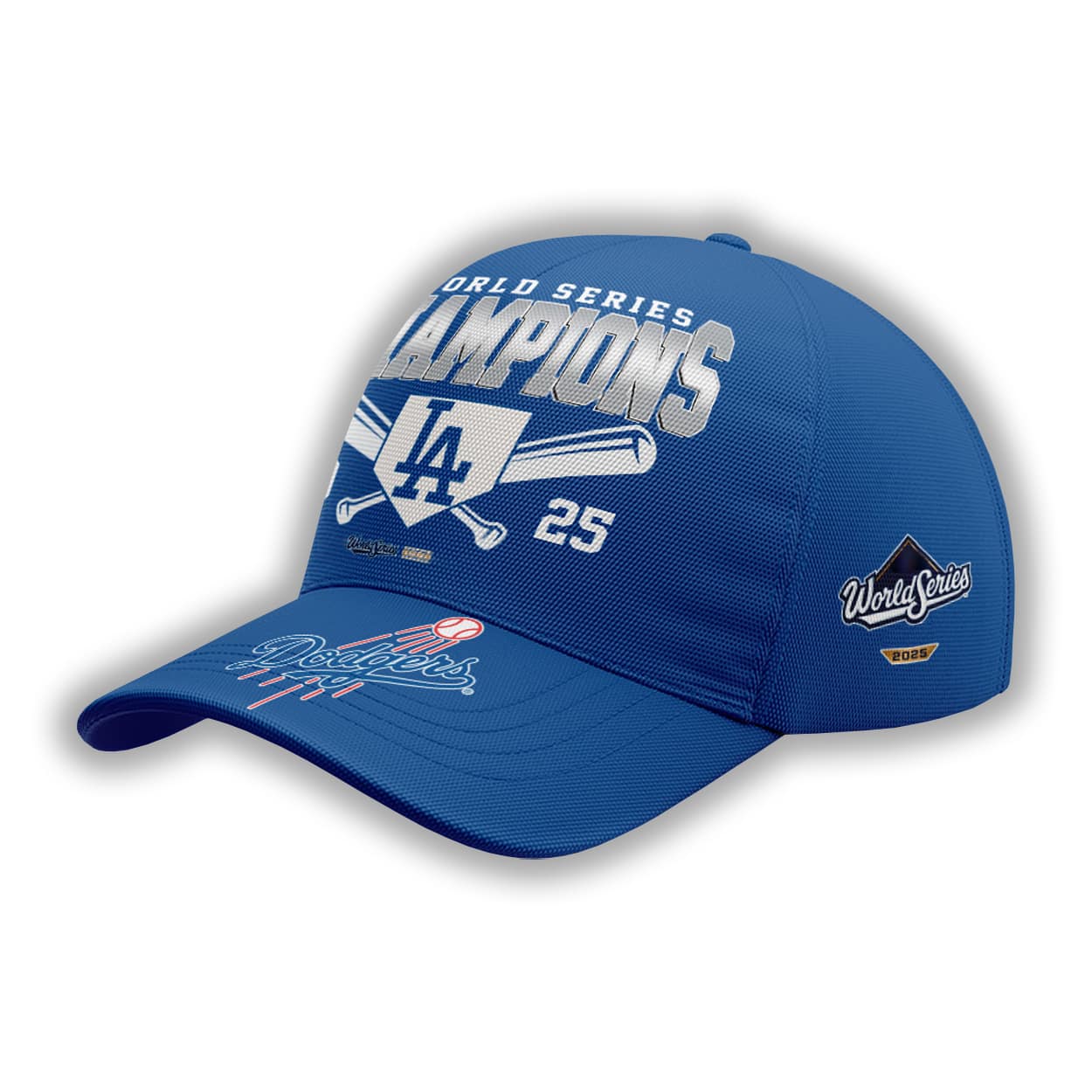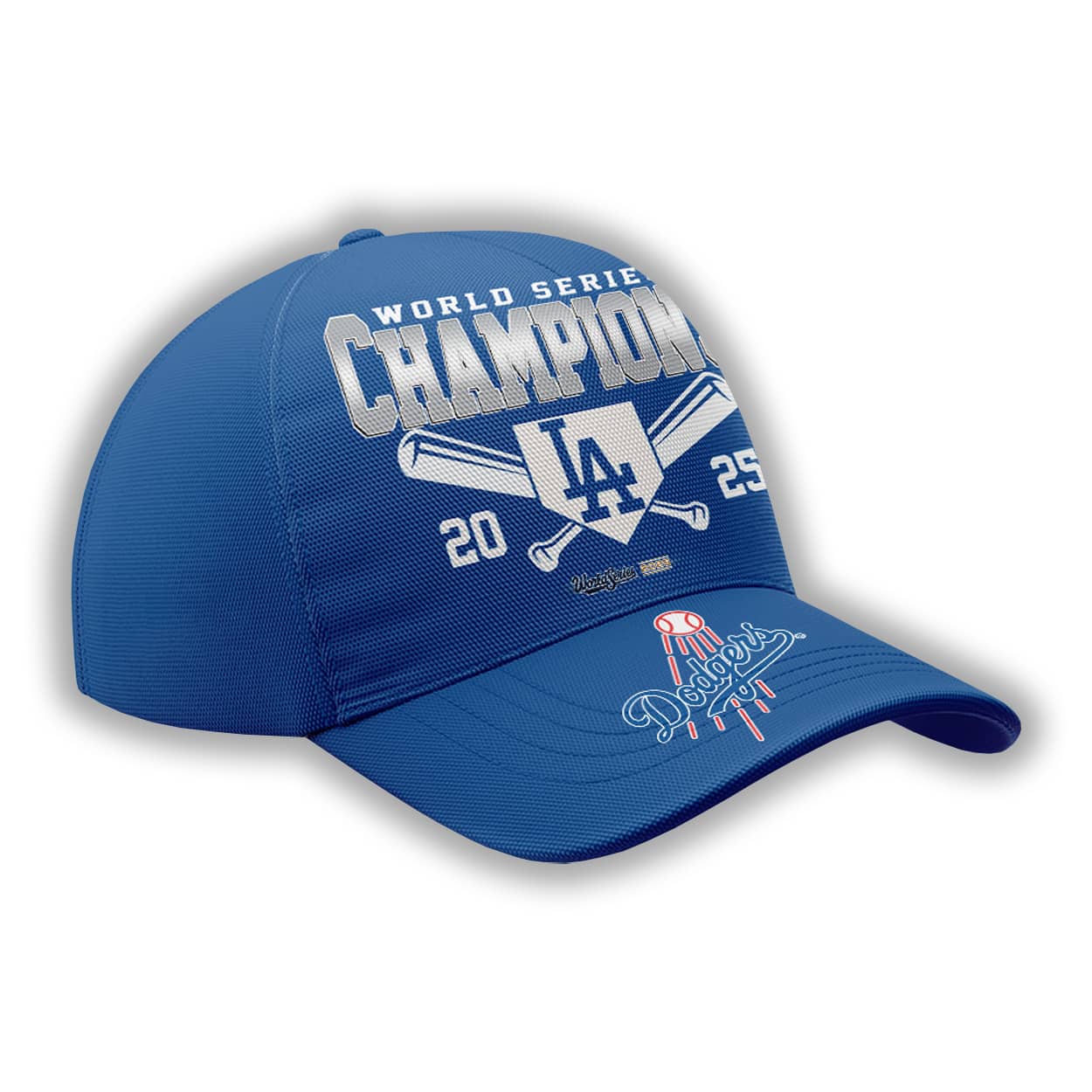 Celebrate the Dodgers’ 2025 World Series triumph with a cap that’s as legendary as the win itself. This deep blue classic cap features “WORLD SERIES CHAMPION” in bold white lettering across the front, with the year “2025” split on either side of the iconic LA logo. Two crossed baseball bats add a fierce touch behind the logo, while “Los Angeles Dodgers” sits proudly below. The brim brings extra flair with the Dodgers’ signature script and a gleaming World Series trophy graphic—because champions deserve a little sparkle.
