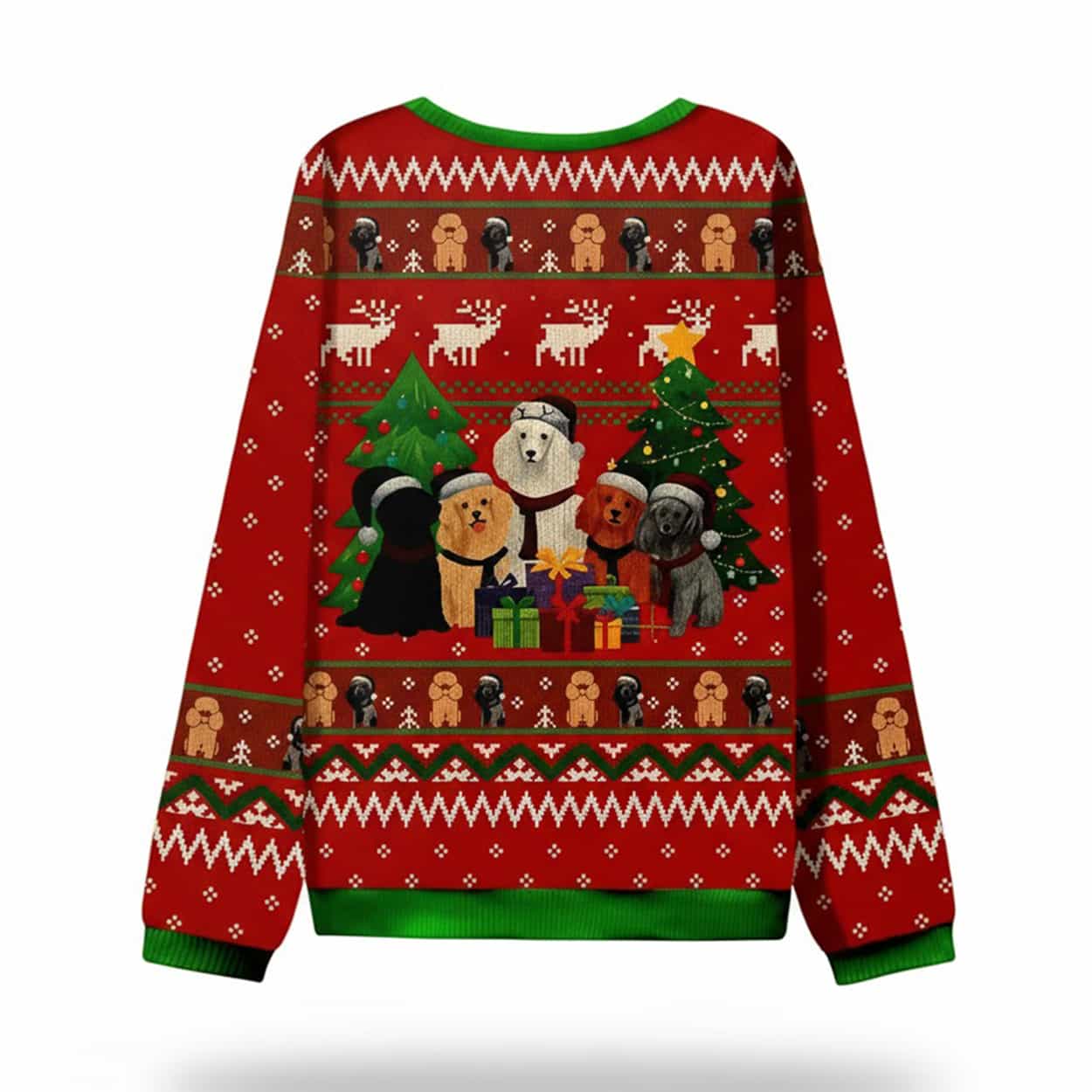 This sweater is a wonderful celebration of two beloved traditions: the fun and humor of the “Ugly Christmas Sweater” party and the unconditional love we have for our pets. It’s the absolute perfect holiday apparel for the dedicated dog lover, poodle owner, or doodle enthusiast who wants to bring their best friend into their festive celebrations. It’s a joyful, heartwarming, and humorous way to showcase your passion for your four-legged family members.