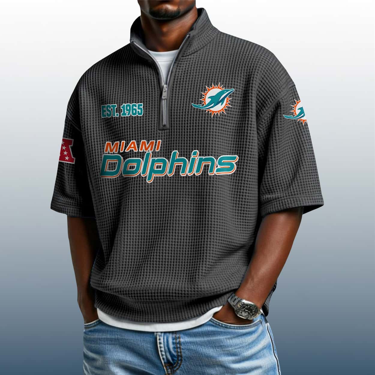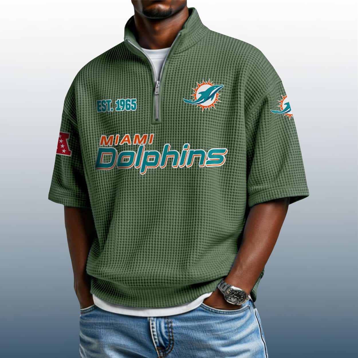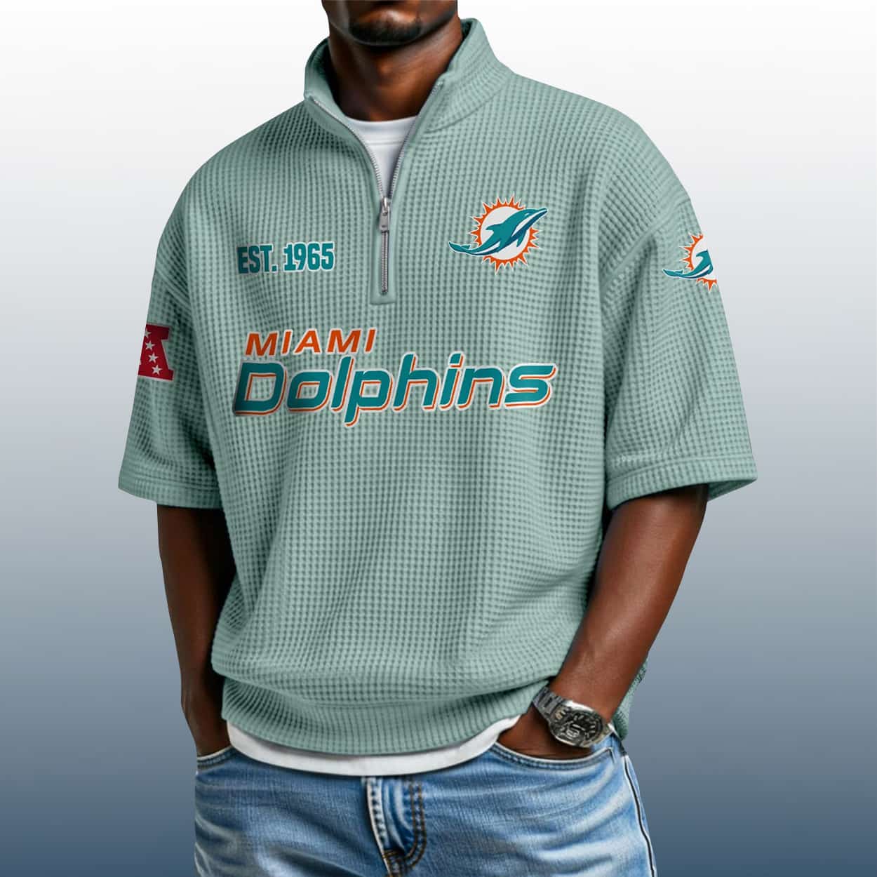 Dive Into Dolphin Style: The Dolphins Est 1965 Waffle Stand Collar Half Zip Polo Shirt That Splashes Team Pride!