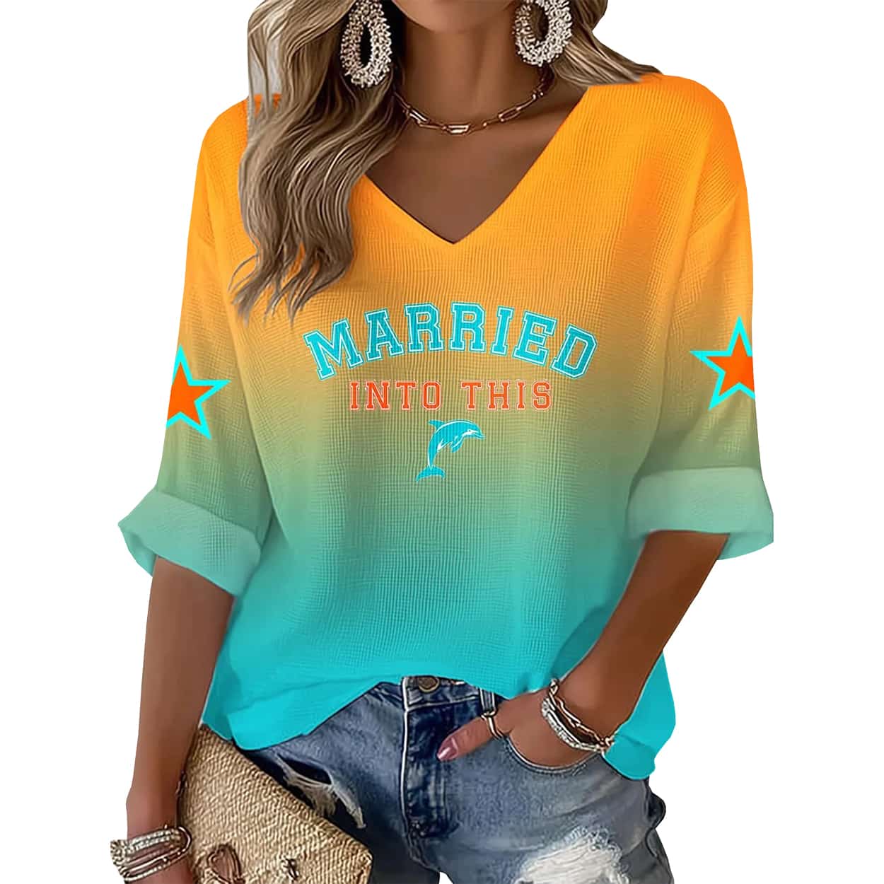 Ready to rep your love story and your team in one bold move? Slip into the Dolphins Married Into This Gradient Print Waffle Long Sleeve Shirt and let your colors—and your attitude—shine. Dive in and own it.