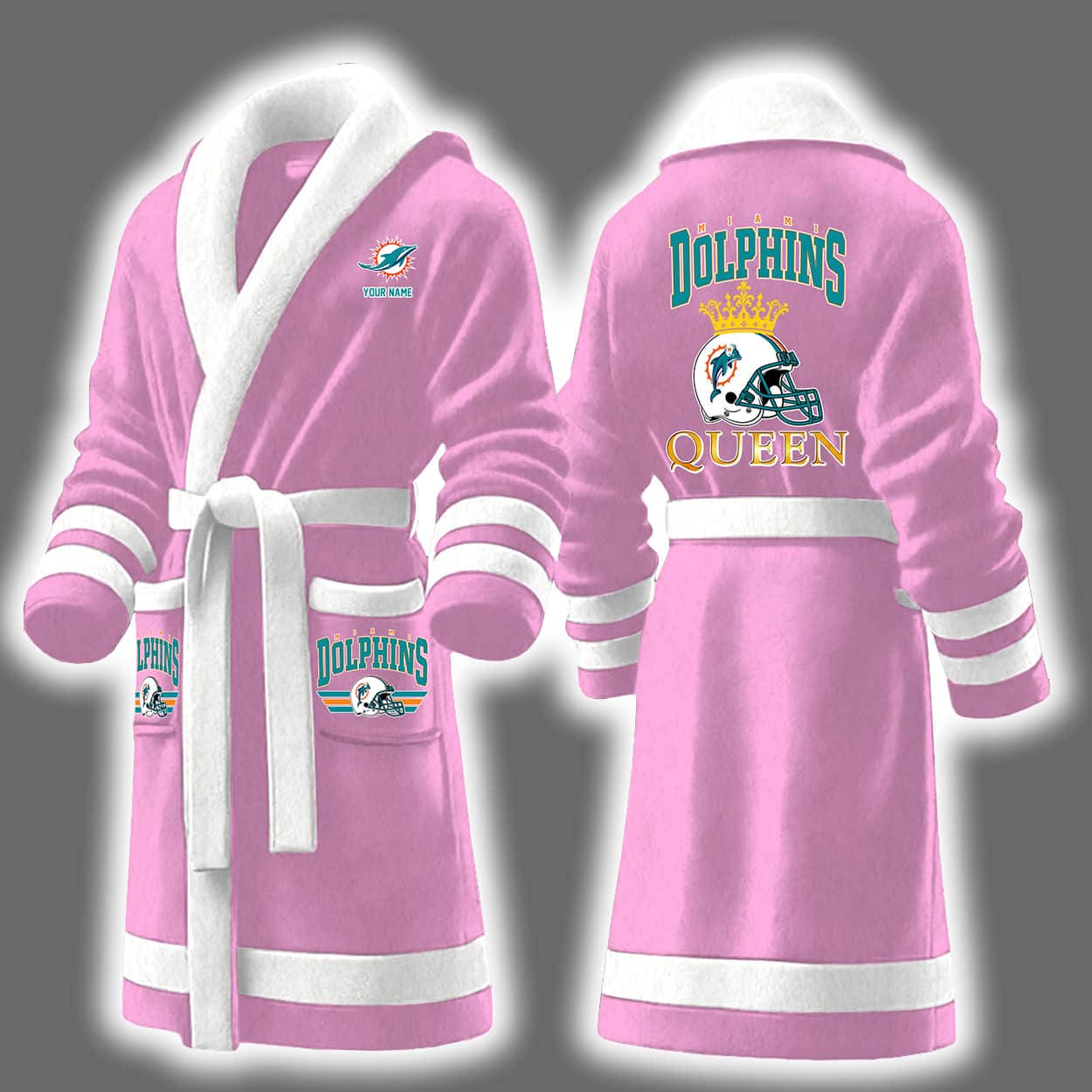 Crown Your Fandom: The Dolphins Queen Personalized Bathrobe