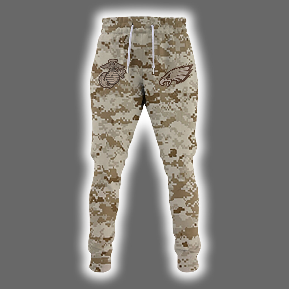 From the End Zone to the Front Line: The Eagles 2025 United State Mine Corps 250th Anniversary Hoodie Joggers Cap