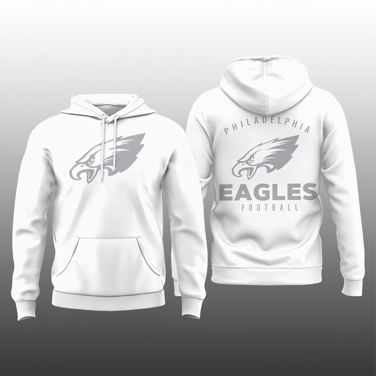 This collection isn’t just gear—it’s a mindset. The white-out theme flips the playbook, offering a fresh, fearless take on fanwear. It’s for those who think big, act bold, and never settle for ordinary. The Eagles logo, sharp and soaring, pops against the clean backdrop like a game-winning pass through open skies. It’s a visual anthem for fans who fly first class.