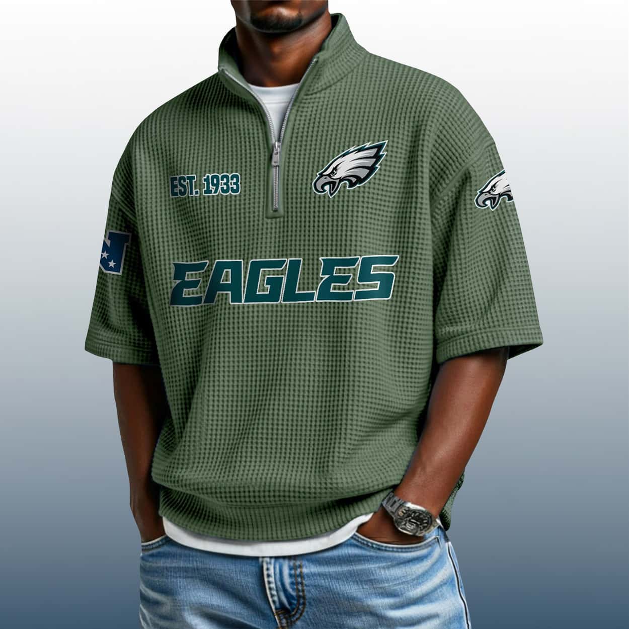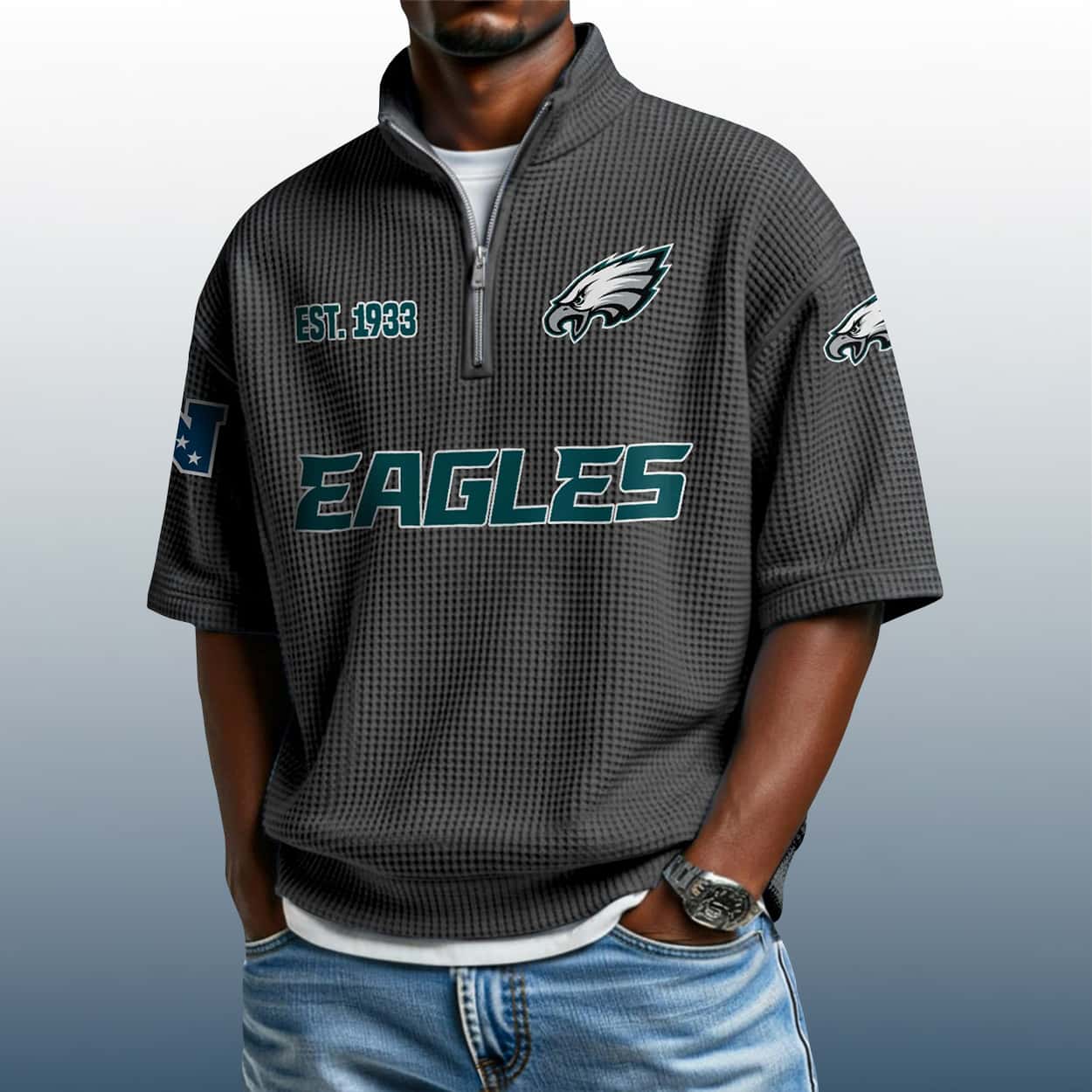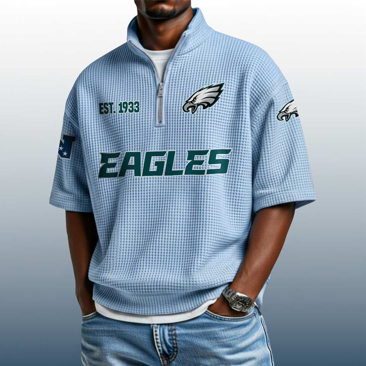 Fly High in Philly Style: The Eagles Est 1933 Waffle Stand Collar Half Zip Polo Shirt