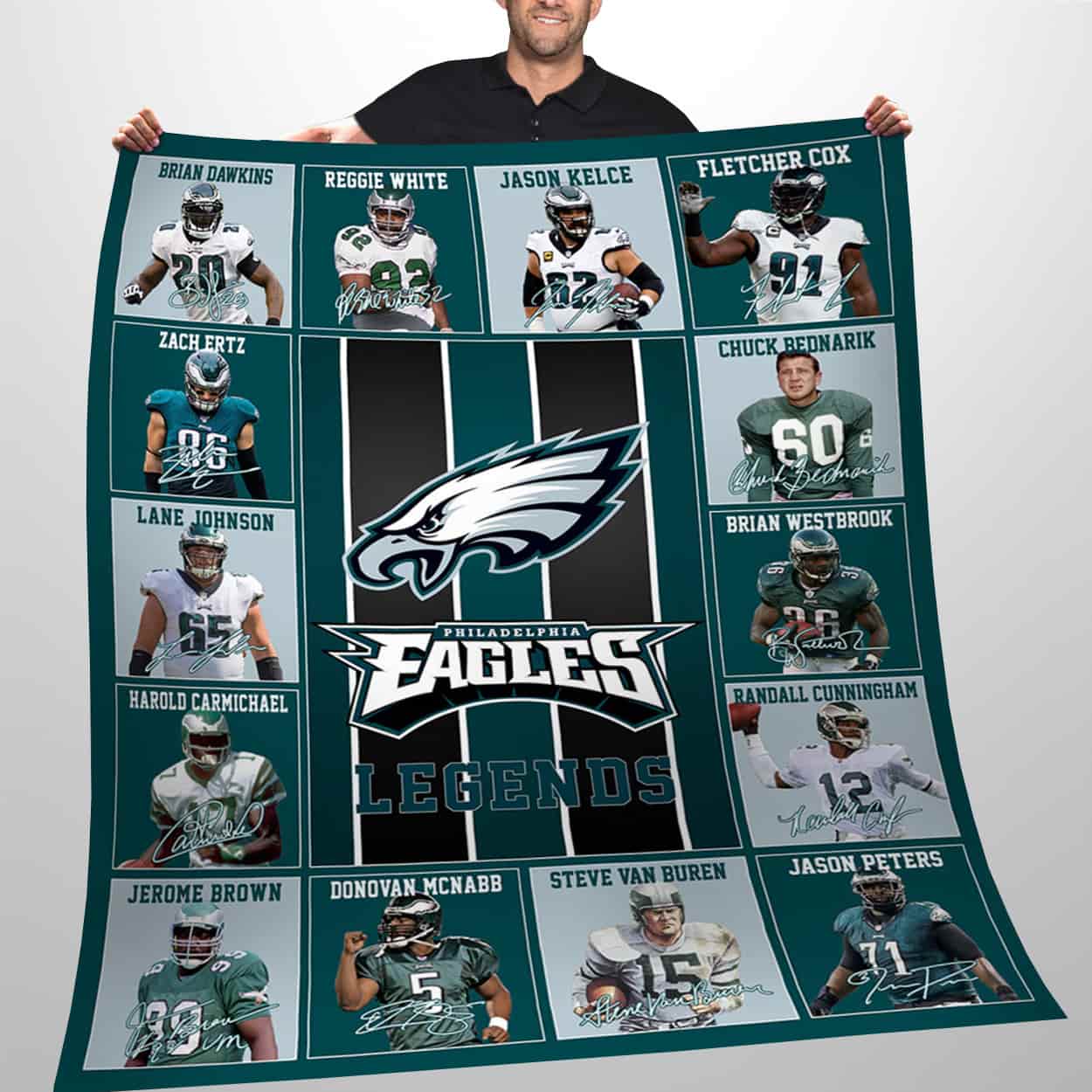 Fly high with the Eagles Football Legends Blanket—featuring iconic players and bold design for fans who live and breathe Philly football.