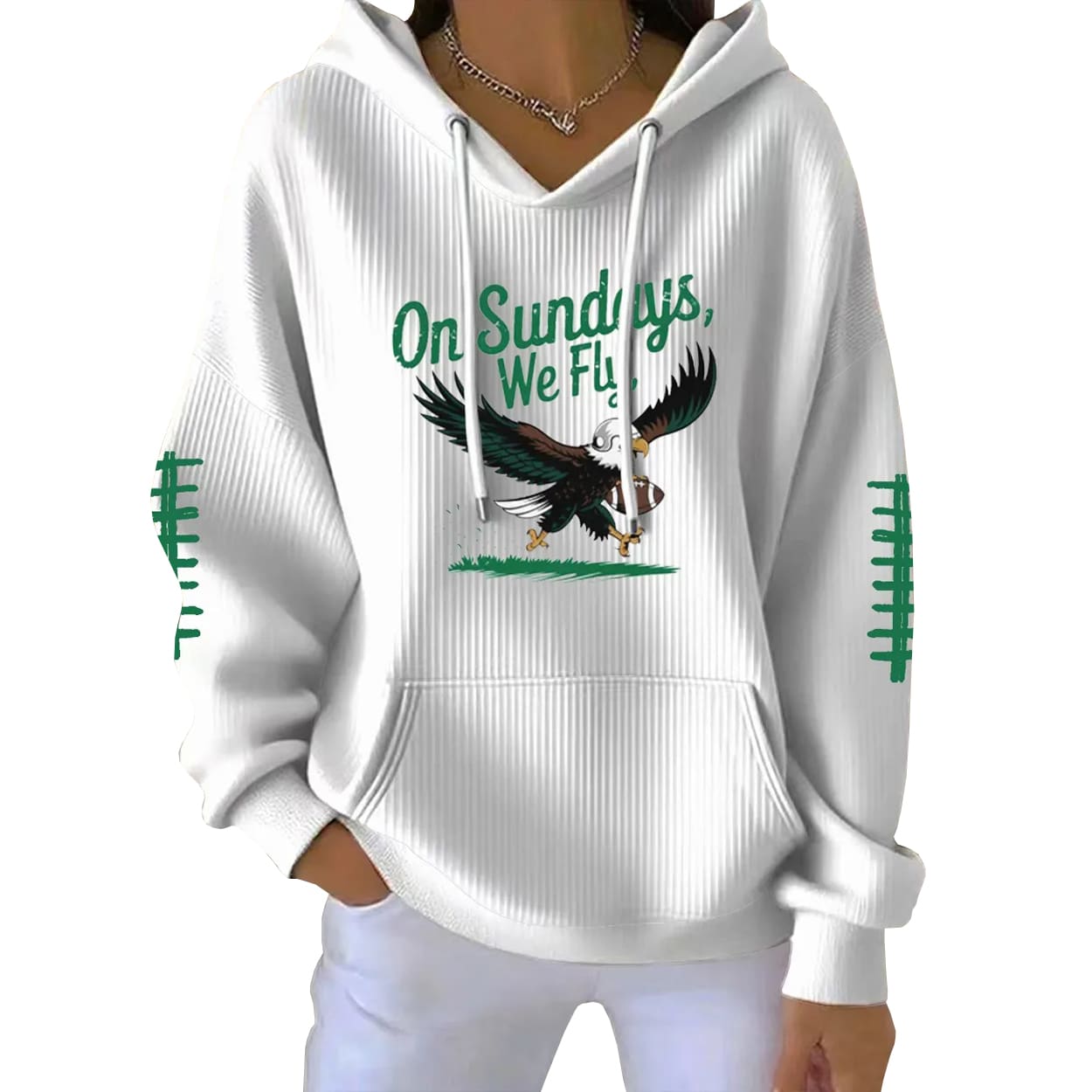 Spread Your Wings in Style: The Eagles On Sundays We Fly Print Pit Striped Hoodie That Screams Game Day Swagger