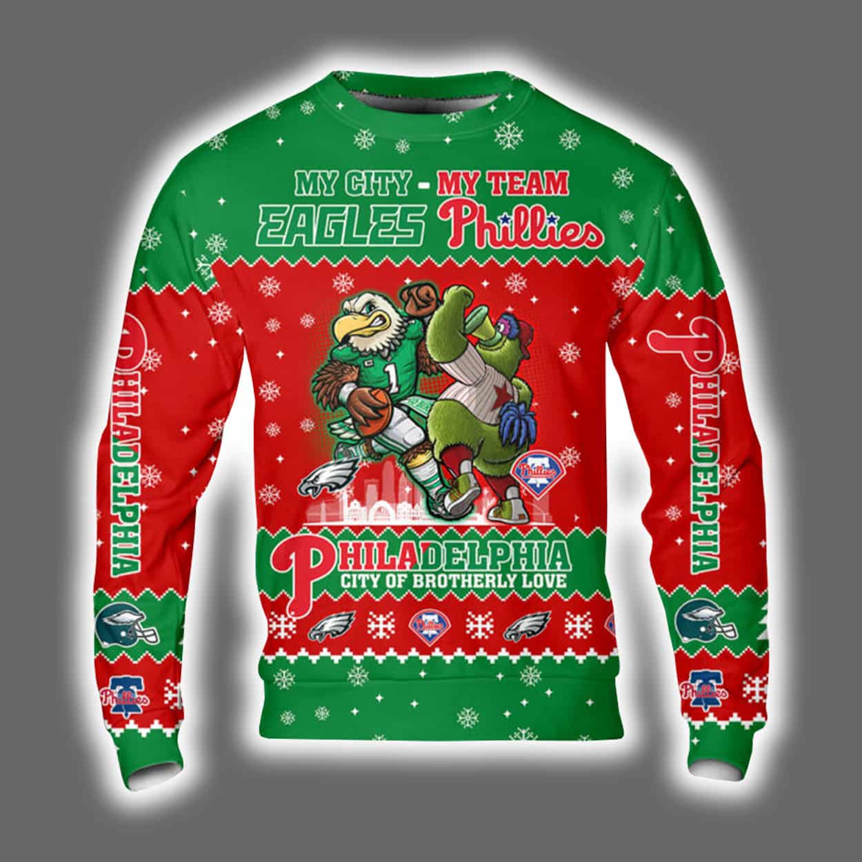 Eagles x Phillies My City My Team City Of Brotherly Love Ugly Christmas Sweater