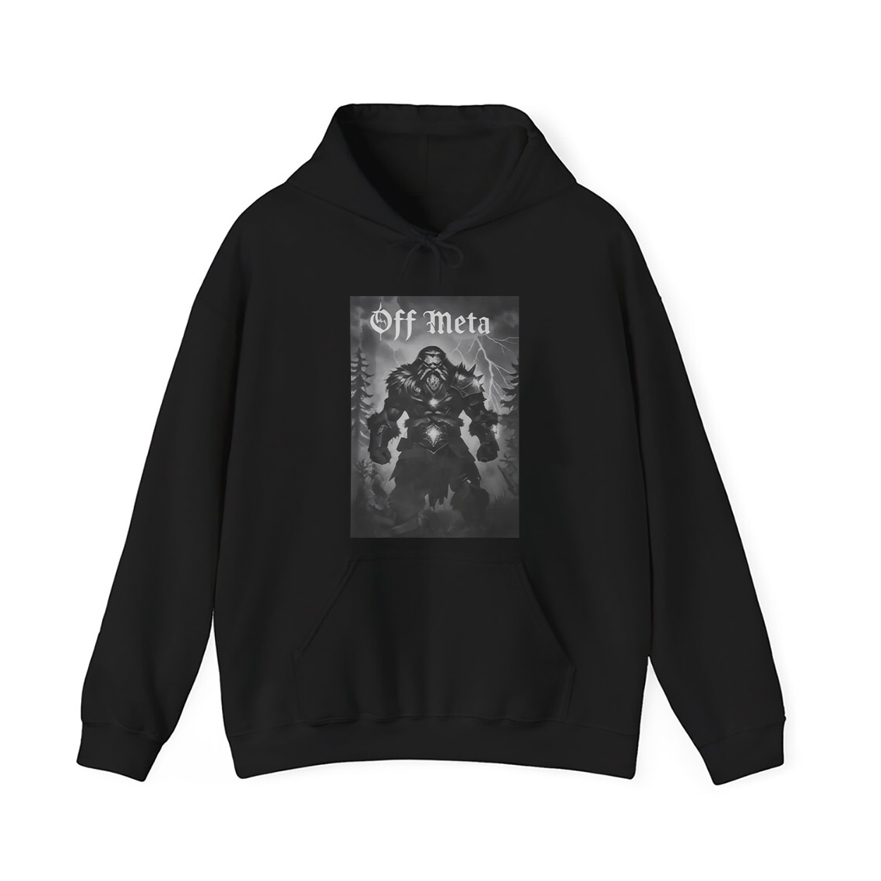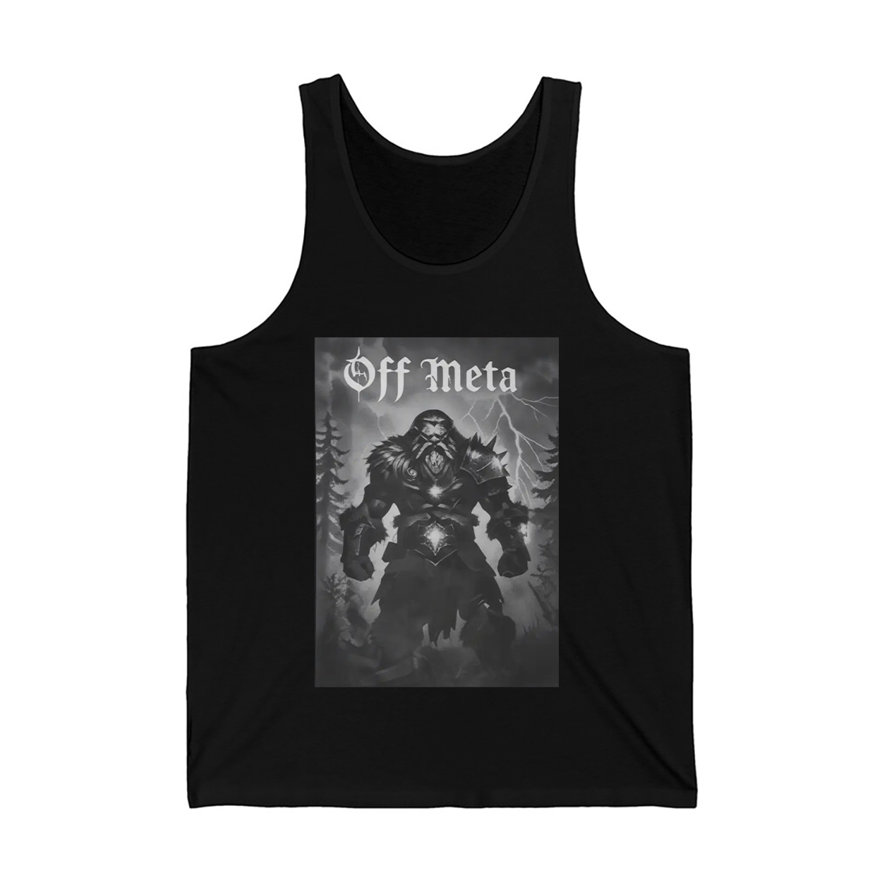 This shirt isn’t just apparel—it’s a mindset. Featuring a striking black-and-white illustration of a battle-hardened warrior cloaked in armor and lightning, this design radiates raw power and defiance. Towering in a misty forest, the figure stares down the system with glowing eyes and unshakable resolve. Above it all, the phrase “Off Meta” looms in bold Gothic lettering—a banner for those who refuse to play by the rules.