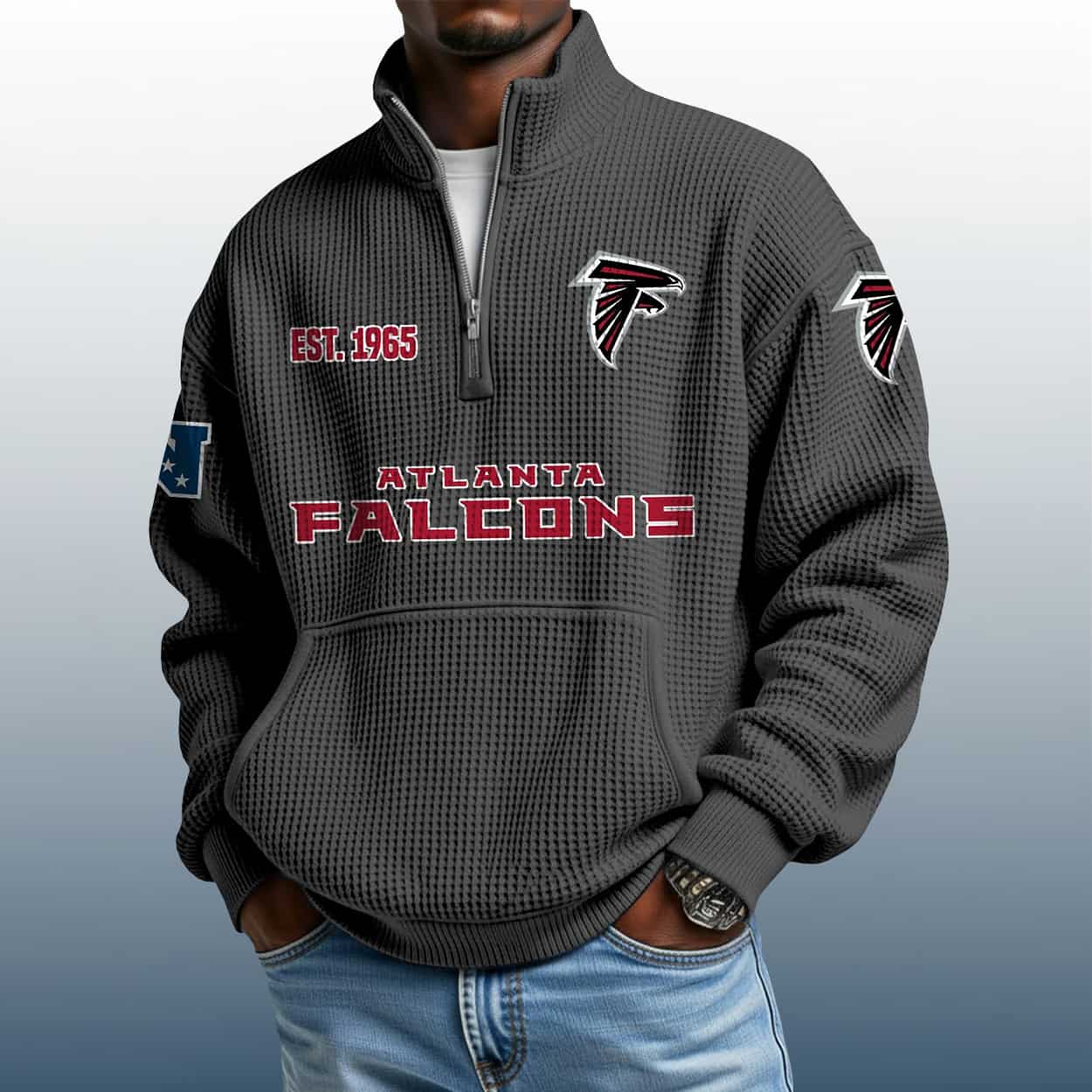 Be the first to review “Falcons Est 1965 Stand Collar Half Zip Waffle Sweatshirt” Cancel reply