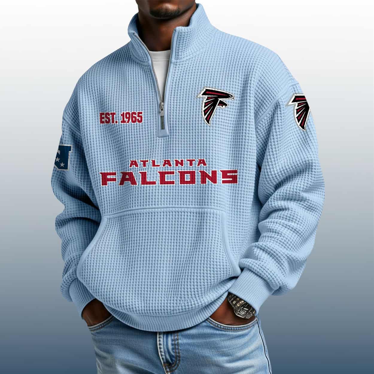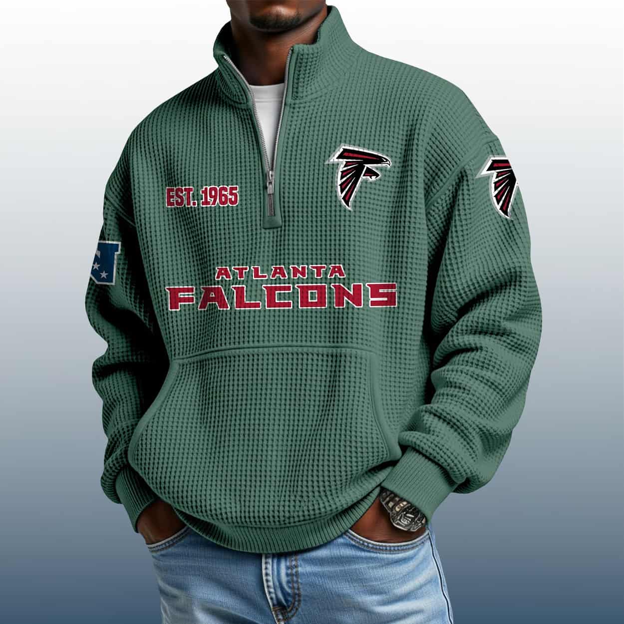 Rise Up in Style: The Falcons Est 1965 Stand Collar Half Zip Waffle Sweatshirt That Soars Beyond the Ordinary