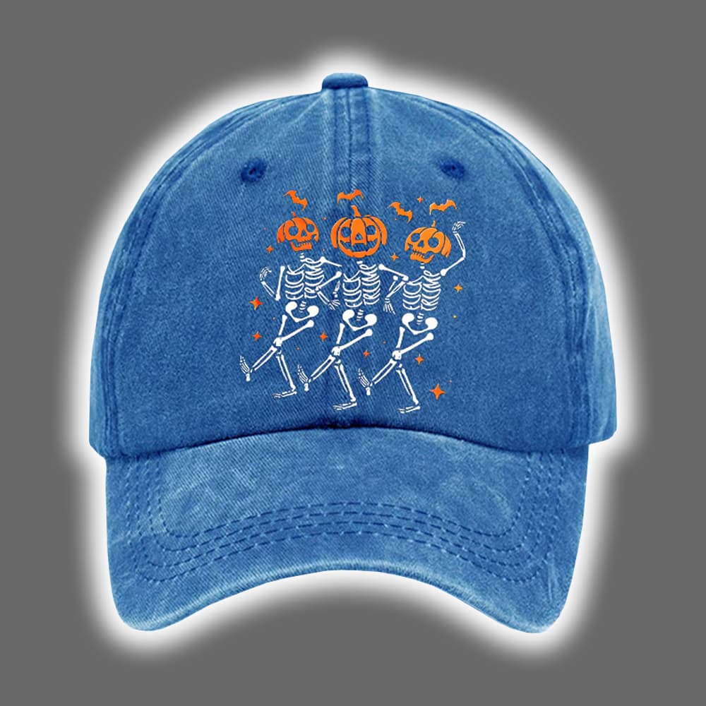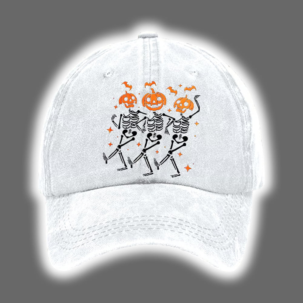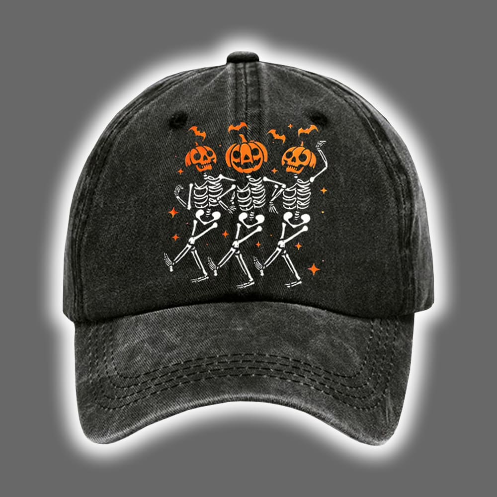 Make a bold statement this Halloween with the Fck Trump Skeleton Halloween Print Baseball Cap. Featuring a cheeky skeleton parade with pumpkin heads and rebellious flair, this cap is perfect for those who love mixing spooky style with political sass.