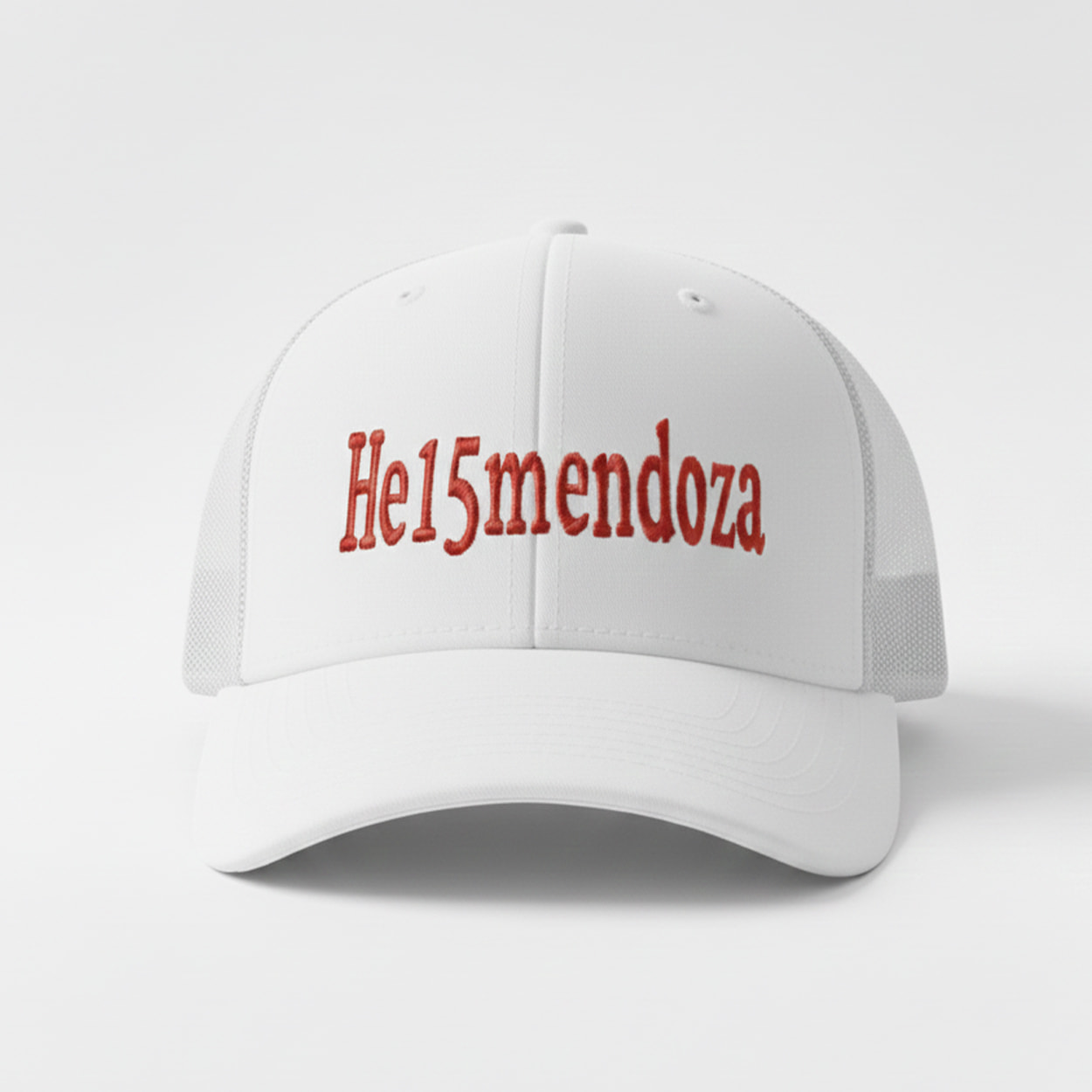 This hat is a direct nod to the athlete’s personal brand and journey. The text “He15mendoza” embroidered across the front in a vibrant red, classic serif font is his well-known social media handle, making this design instantly recognizable to his fans. The playful incorporation of the number ’15’ within the name cleverly merges his jersey number with his family name, transforming a simple hat into a personal signature. It’s a statement piece that speaks volumes without saying a word, connecting you directly to the athlete’s story.