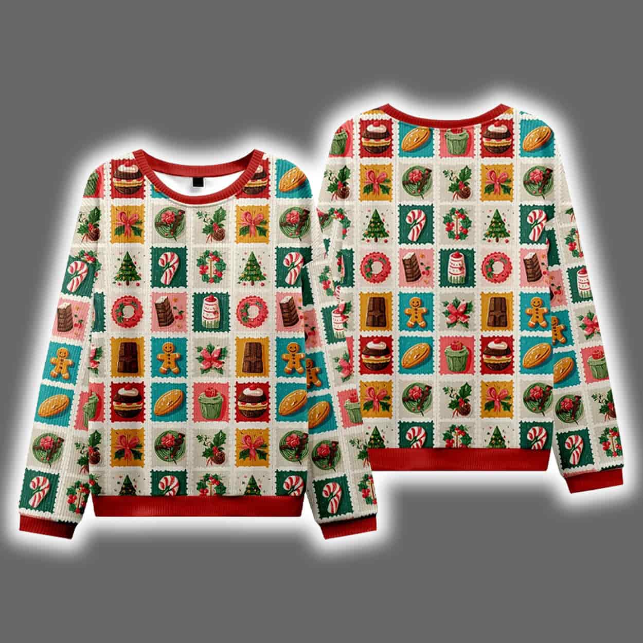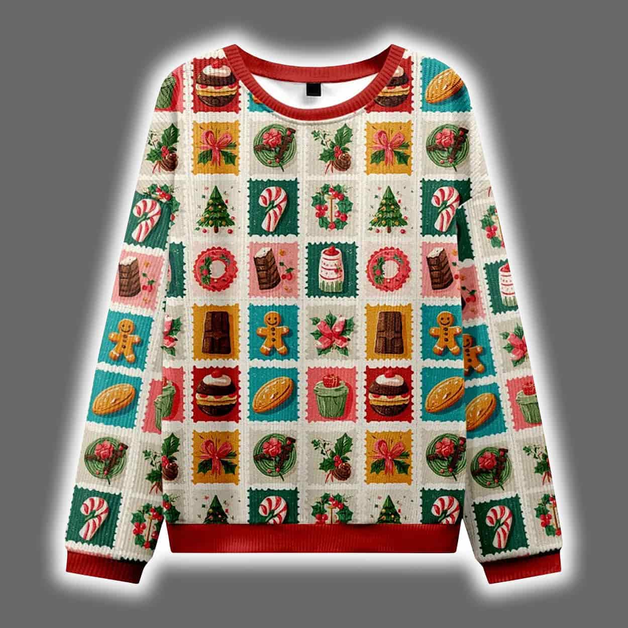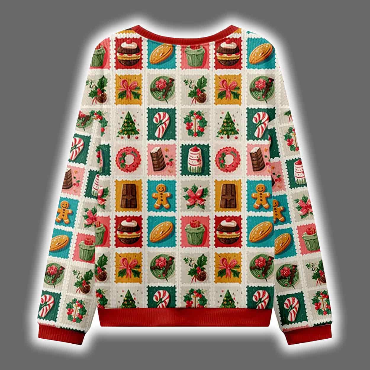 Holiday Spirit, One Square at a Time: The Festive Treats Patchwork Ugly Christmas Sweater That Pops
