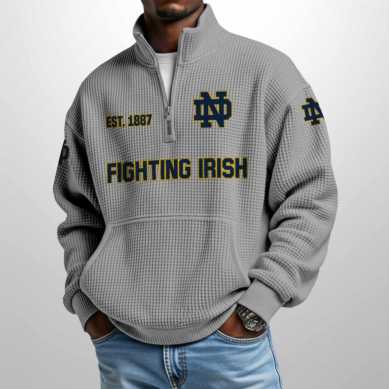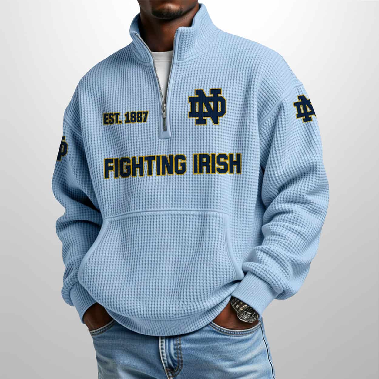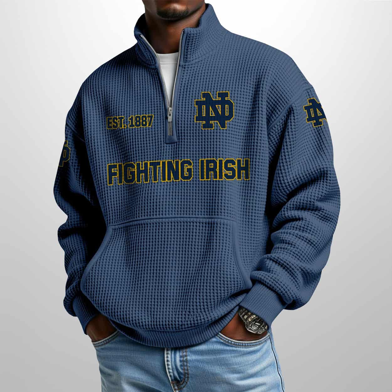 Celebrate Notre Dame pride with the Fighting Irish Est 1887 Waffle Stand Collar Half Zip Sweatshirt—a bold, spirited pullover that blends tradition, grit, and unmistakable style.