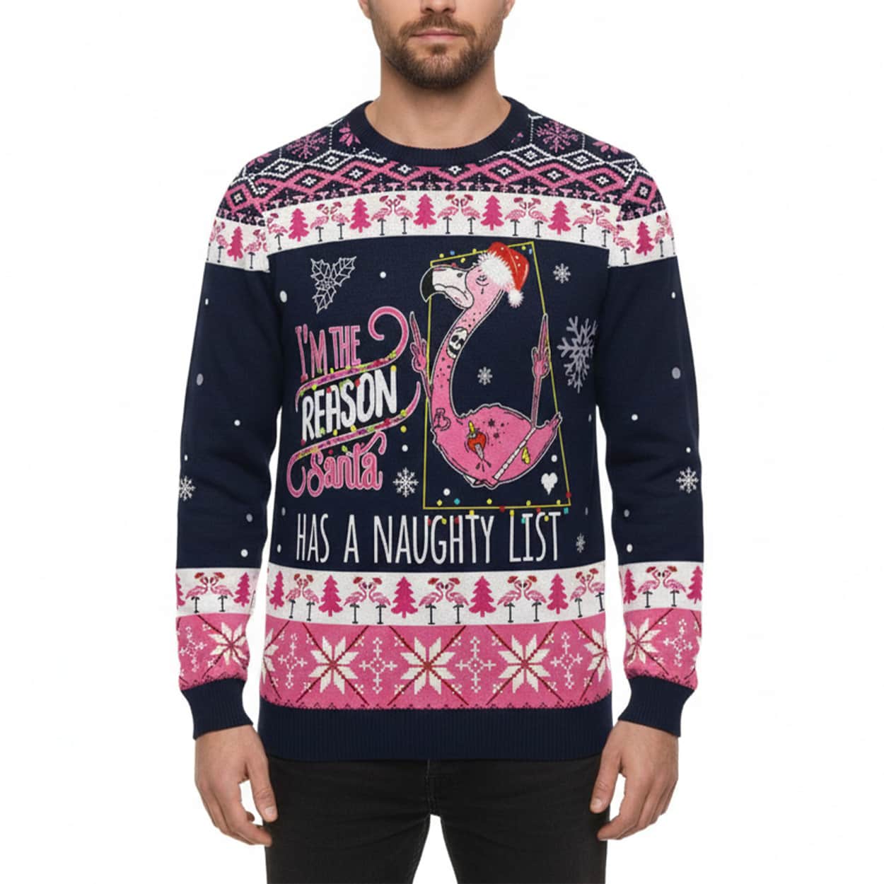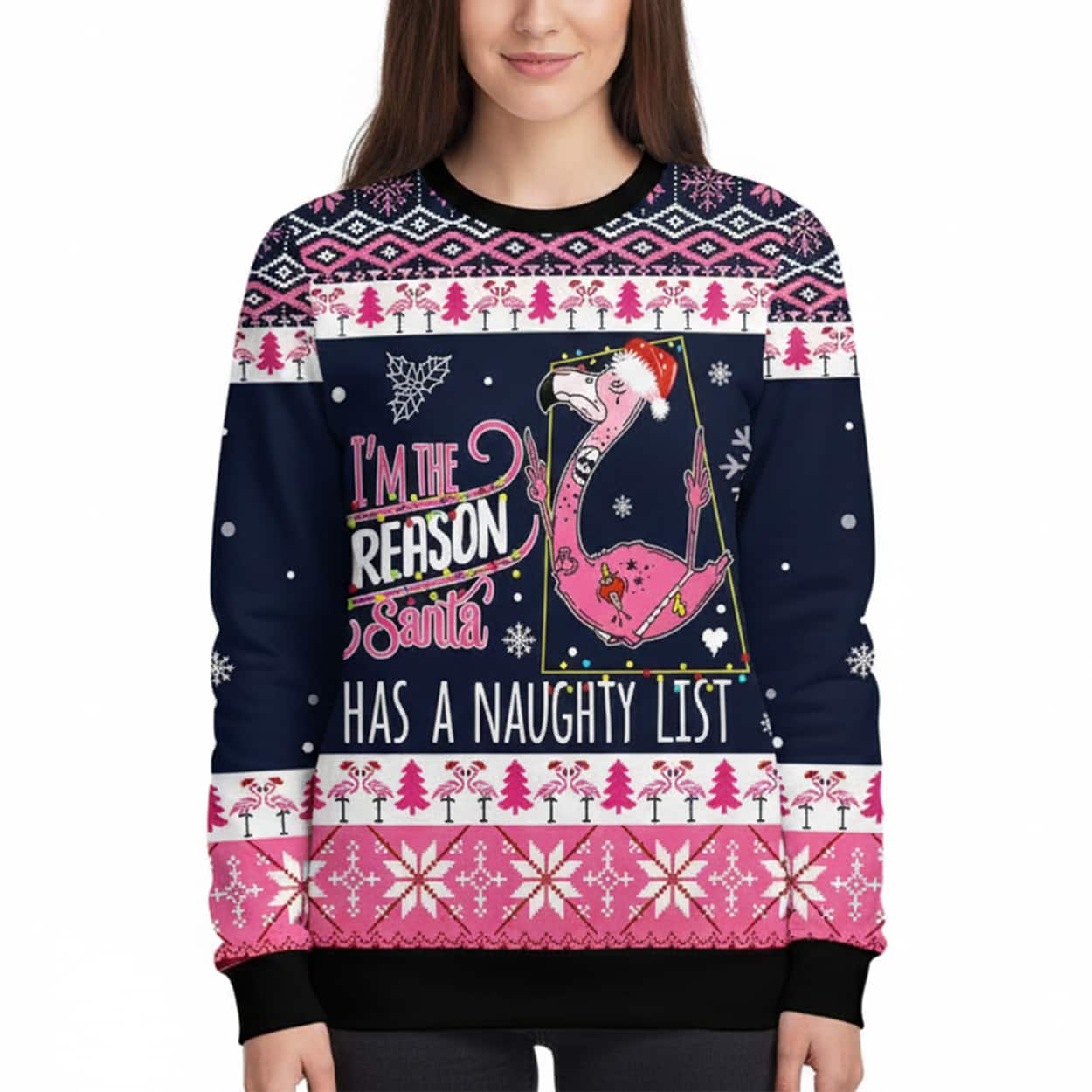 Flamingo I’m The Reason Santa Has A Naughty List Ugly Christmas Sweater