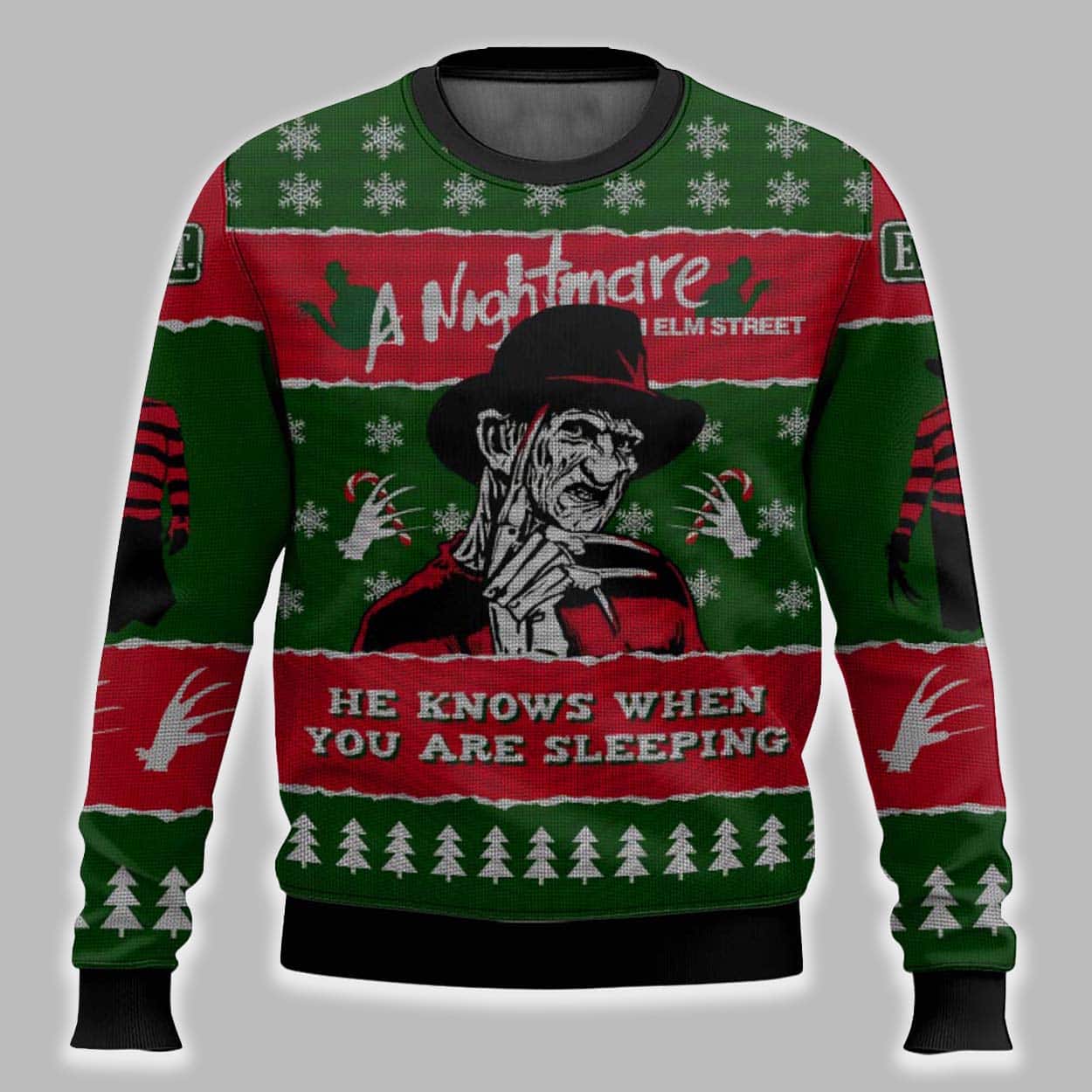 Freddy Krueger A Nightmare On Elm Street Ugly Christmas Sweater – He Knows When You’re Sleeping
