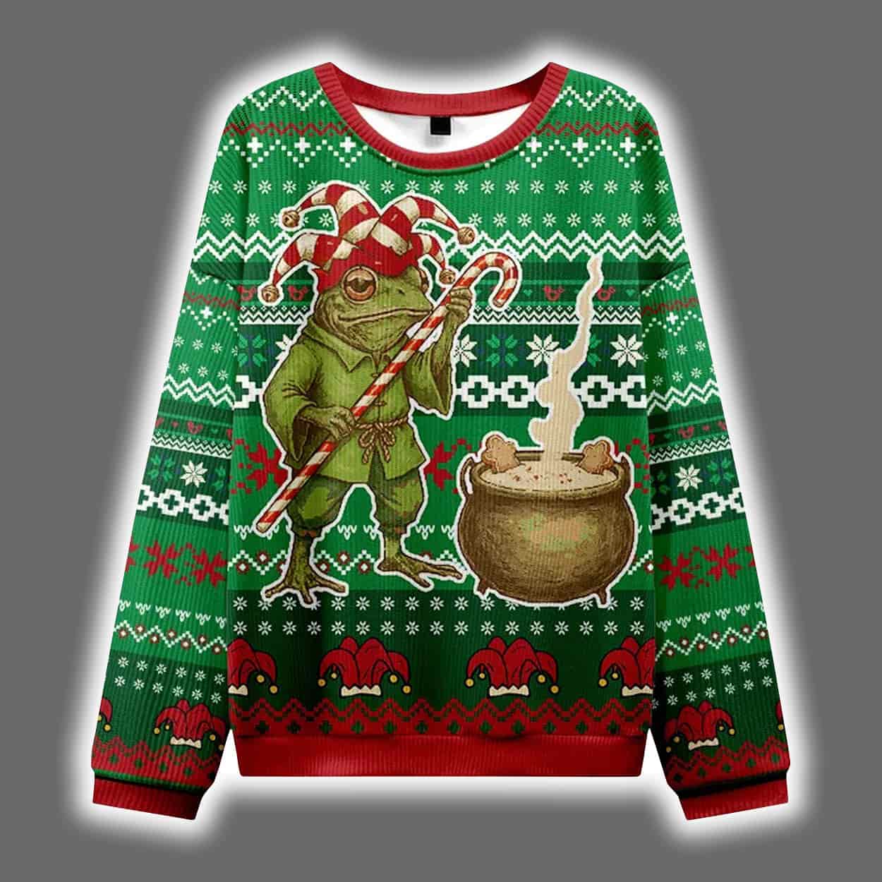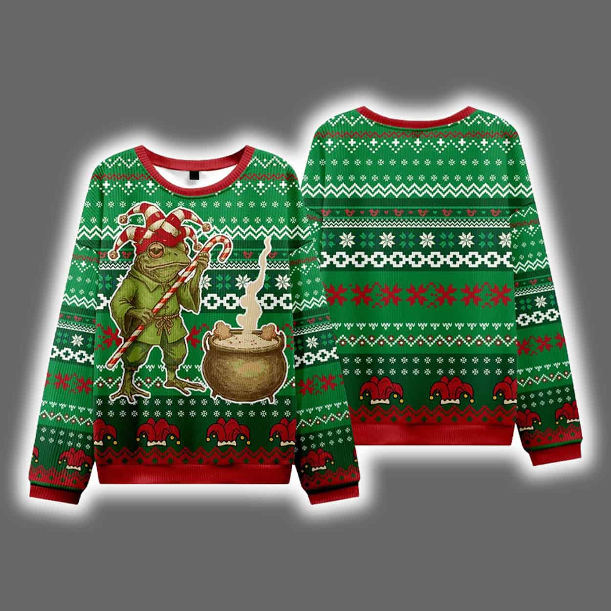 Stirring Up Cheer: The Frog Making Soup Ugly Christmas Sweater That’s Full of Flavor