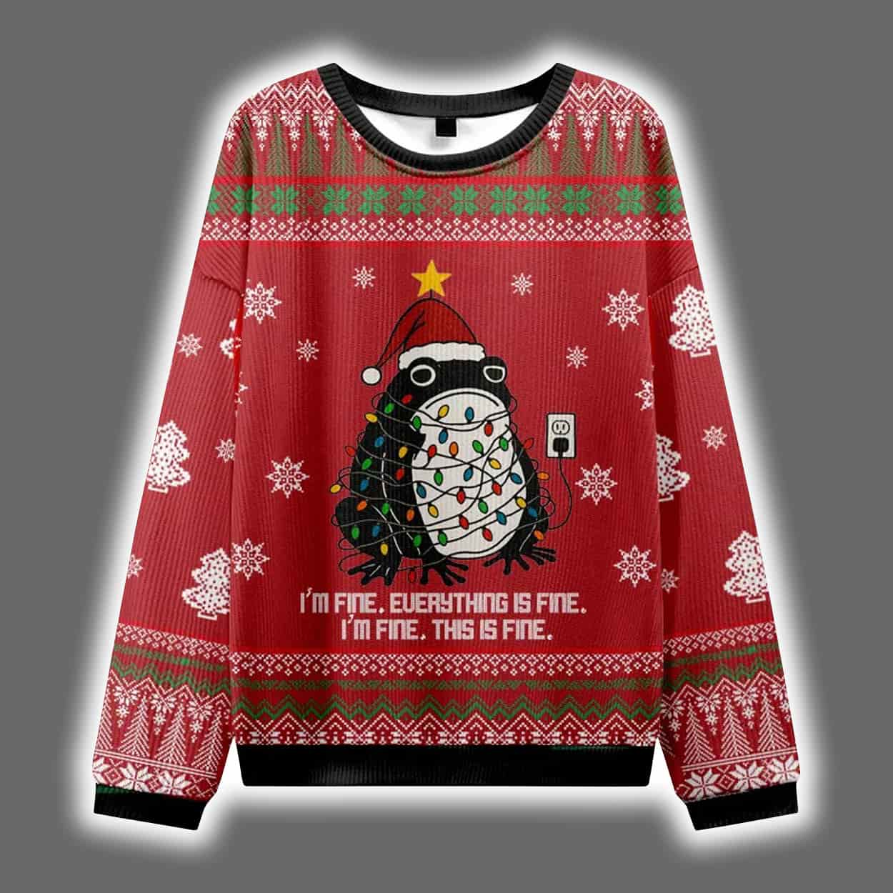 Festive Frogs & Holiday Meltdowns: The Funny Frog Lights Everything Is Fine Ugly Christmas Sweater That Gets You