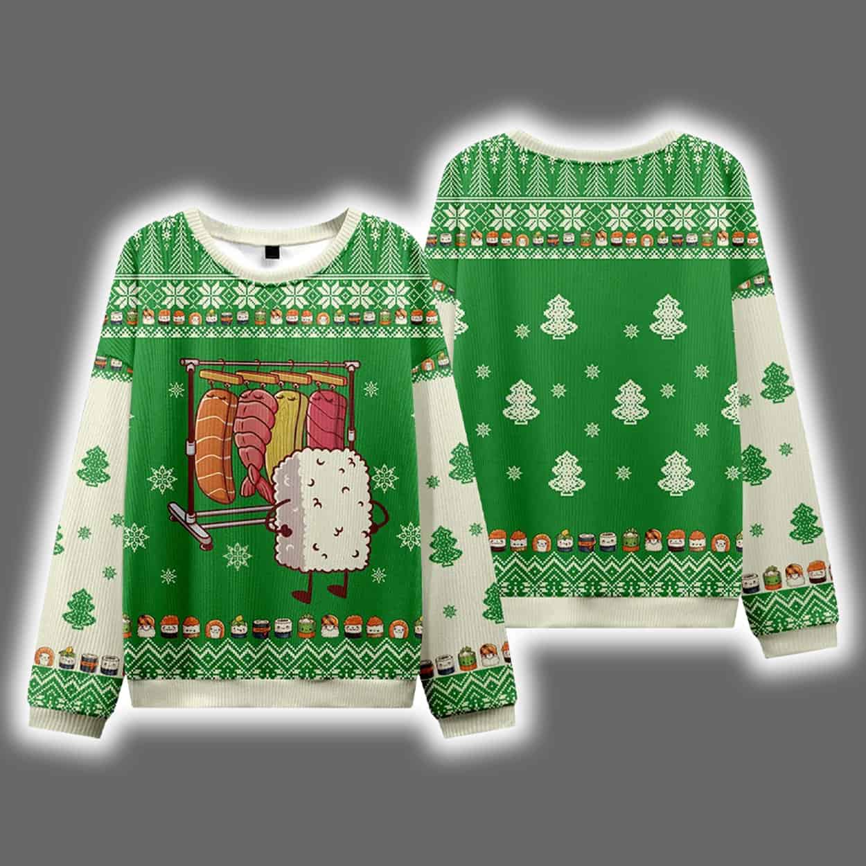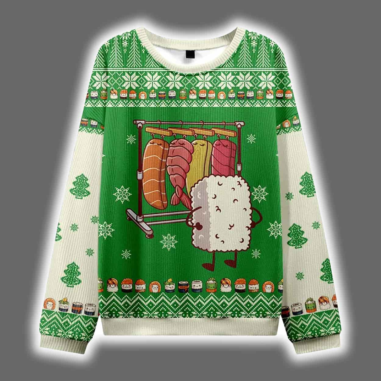 Ready to spice up your sweater game? The Funny Sushi Choosing Clothes Ugly Christmas Sweater is your ticket to turning heads and tickling funny bones. Wear it loud, wear it proud—because holiday fashion should never be bland.