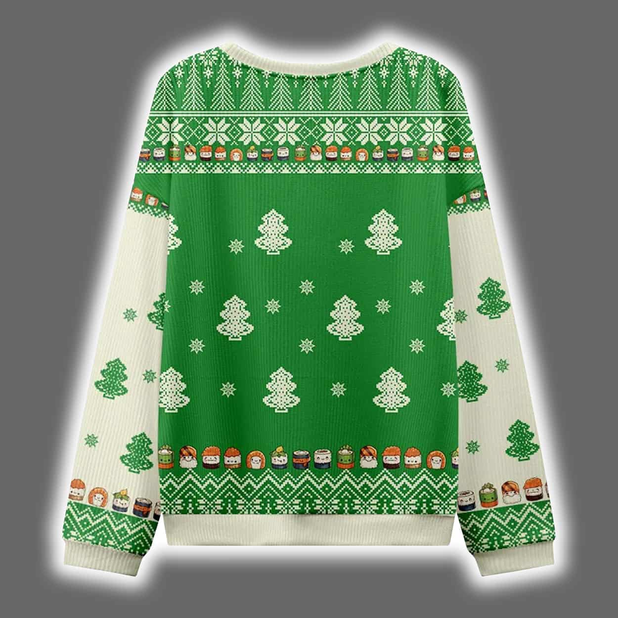 Inspired by the joy of mixing food, fashion, and festive nonsense, this sweater is for those who don’t take the holidays too seriously. Whether you see sushi, shawarma, or just a meat lover’s dream, the design invites double takes and belly laughs. It’s a tribute to the bold, the hungry, and the humor-driven—perfect for anyone who believes that holiday style should be as flavorful as the feast itself.