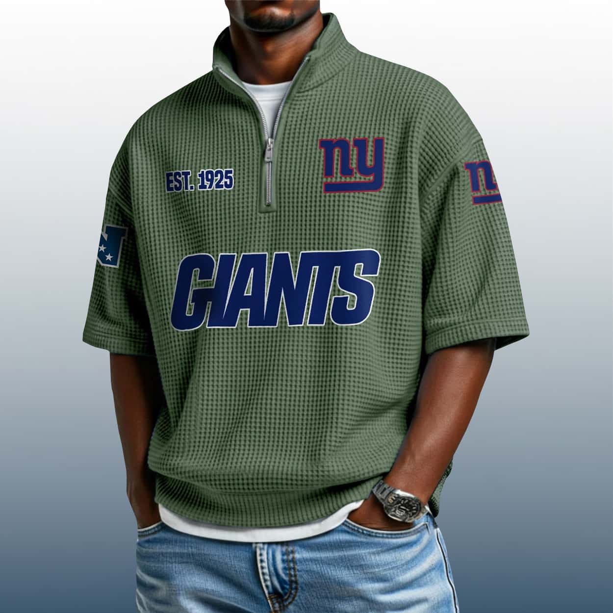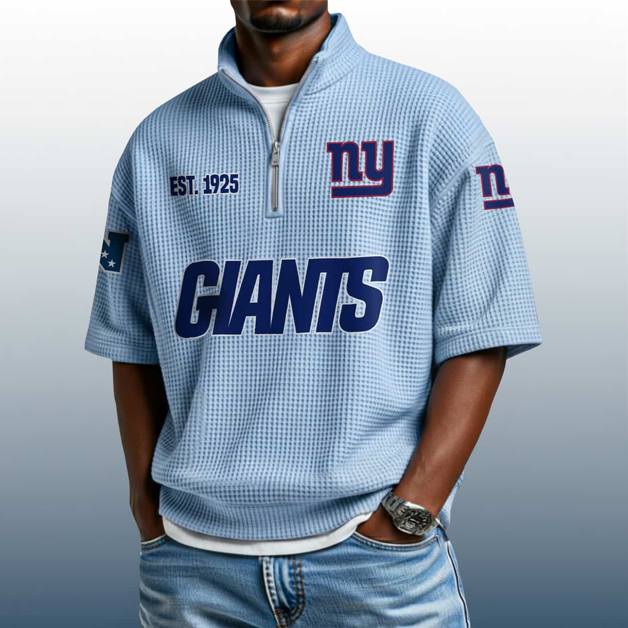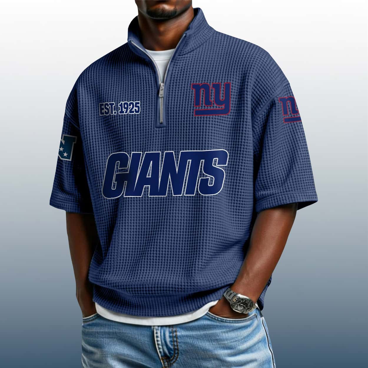 Big Blue Swagger: The Giants Est 1925 Waffle Stand Collar Half Zip Polo Shirt That Commands Attention
