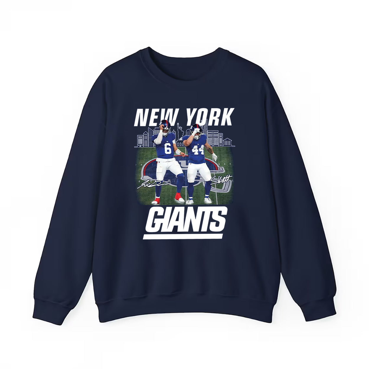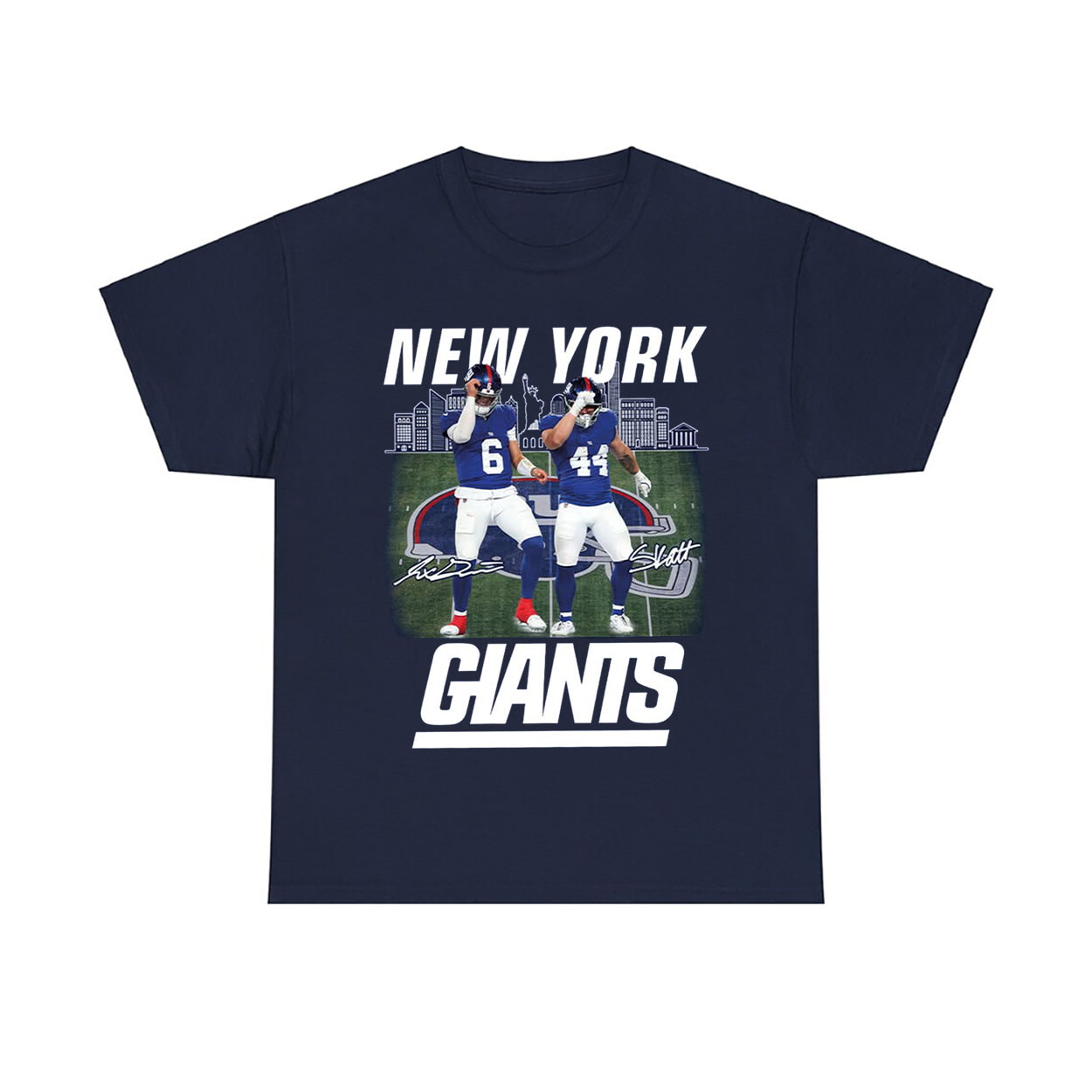 This isn’t just merch—it’s a movement. Inspired by the fearless energy of Jaxson Dart and Cam Skattebo, the design channels the swagger of the Skattebros era: gritty, confident, and unapologetically bold. The cityscape nods to the Giants’ urban roots, while the dual-player pose captures the synergy of teamwork and individual brilliance. It’s for fans who think big, act bold, and wear their passion like armor.