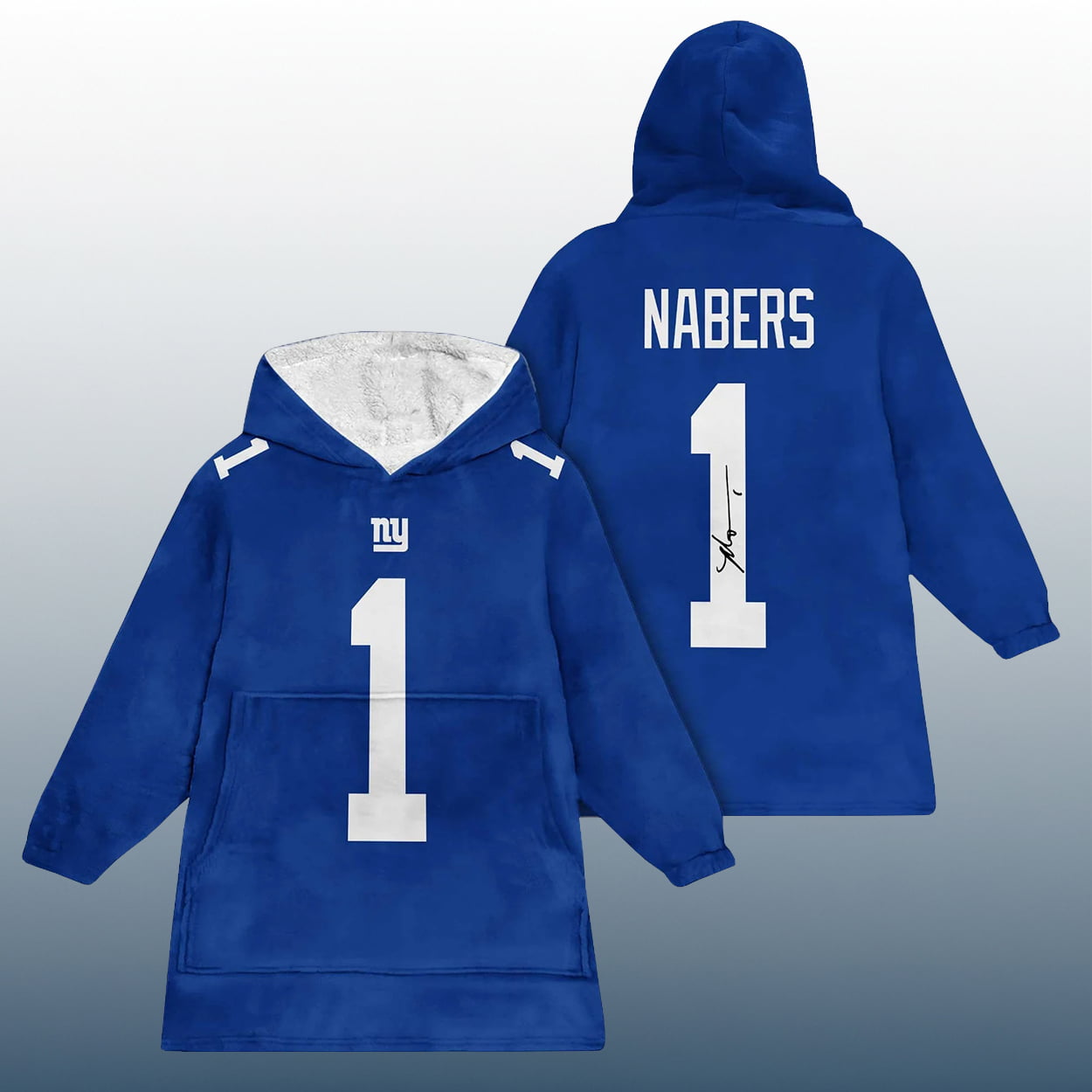 Make the Play in Style with the Giants Malik Nabers 1 Signature Unisex Blanket Hoodie!