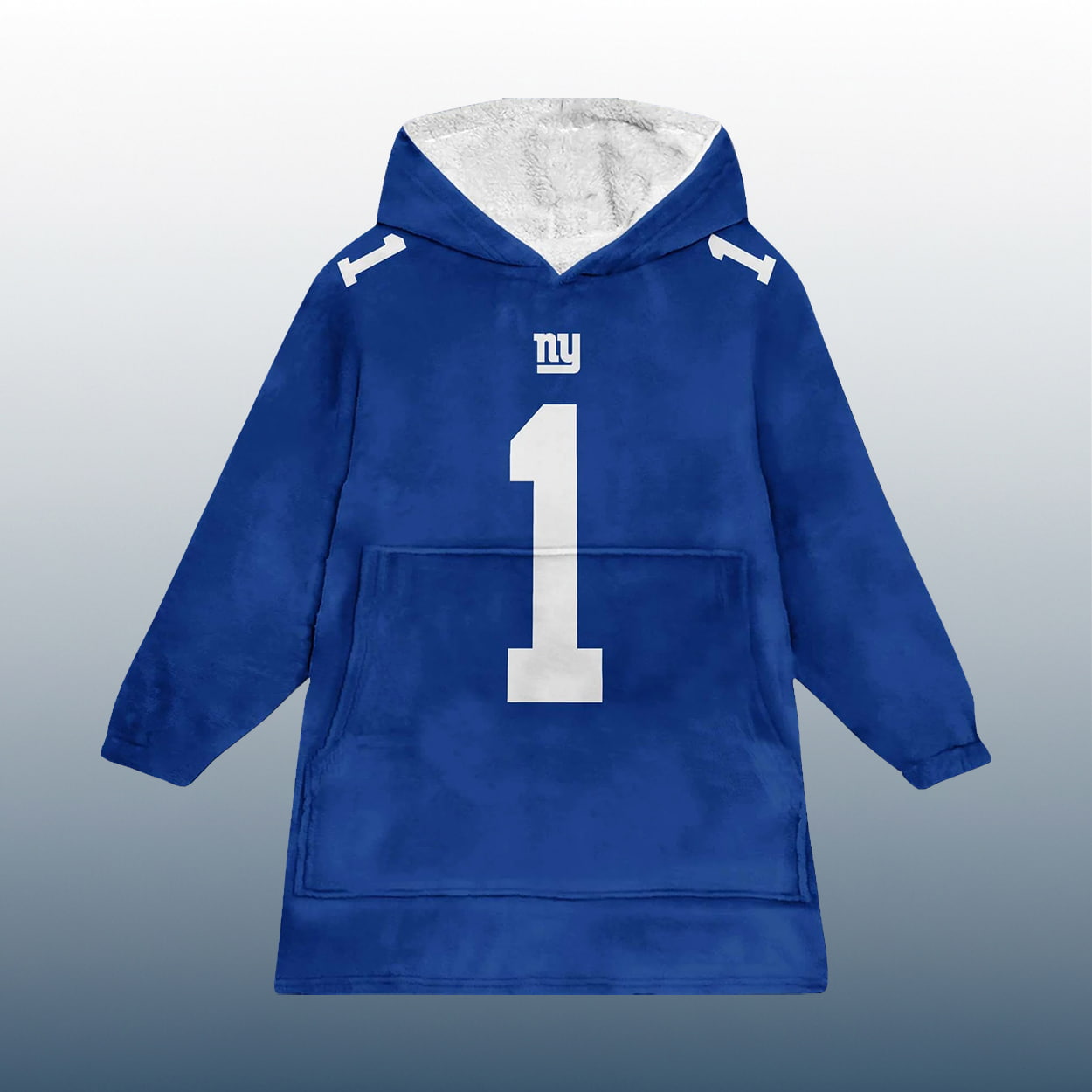 Show off your Giants pride with the Giants Malik Nabers 1 Signature Unisex Blanket Hoodie—where bold style meets rising star energy.